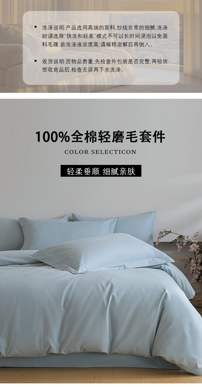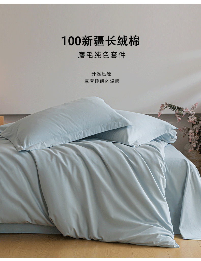 当前位置: 91家纺网 > 商品网购 > 床品套件 > 四件套 > 全棉普通四件套 > 618家纺 2025新款全棉100支磨毛单品四件套系列-四件套 冰蓝