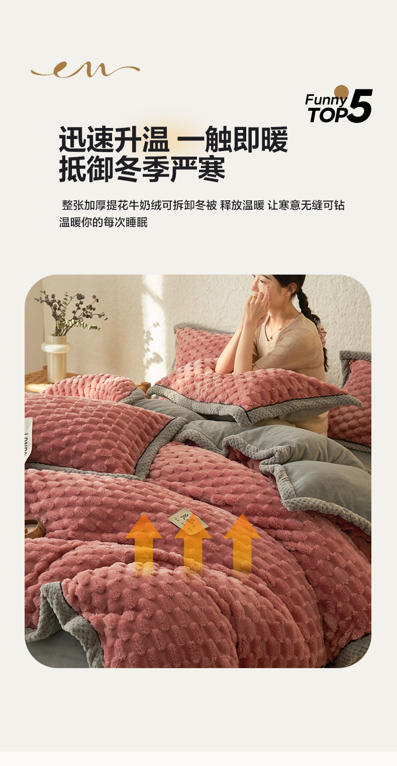 • 91家纺网 家纺一手货源 找家纺 早晨家纺 2025新款金贵款牛奶绒提花-可拆卸冬被 金贵-豆沙