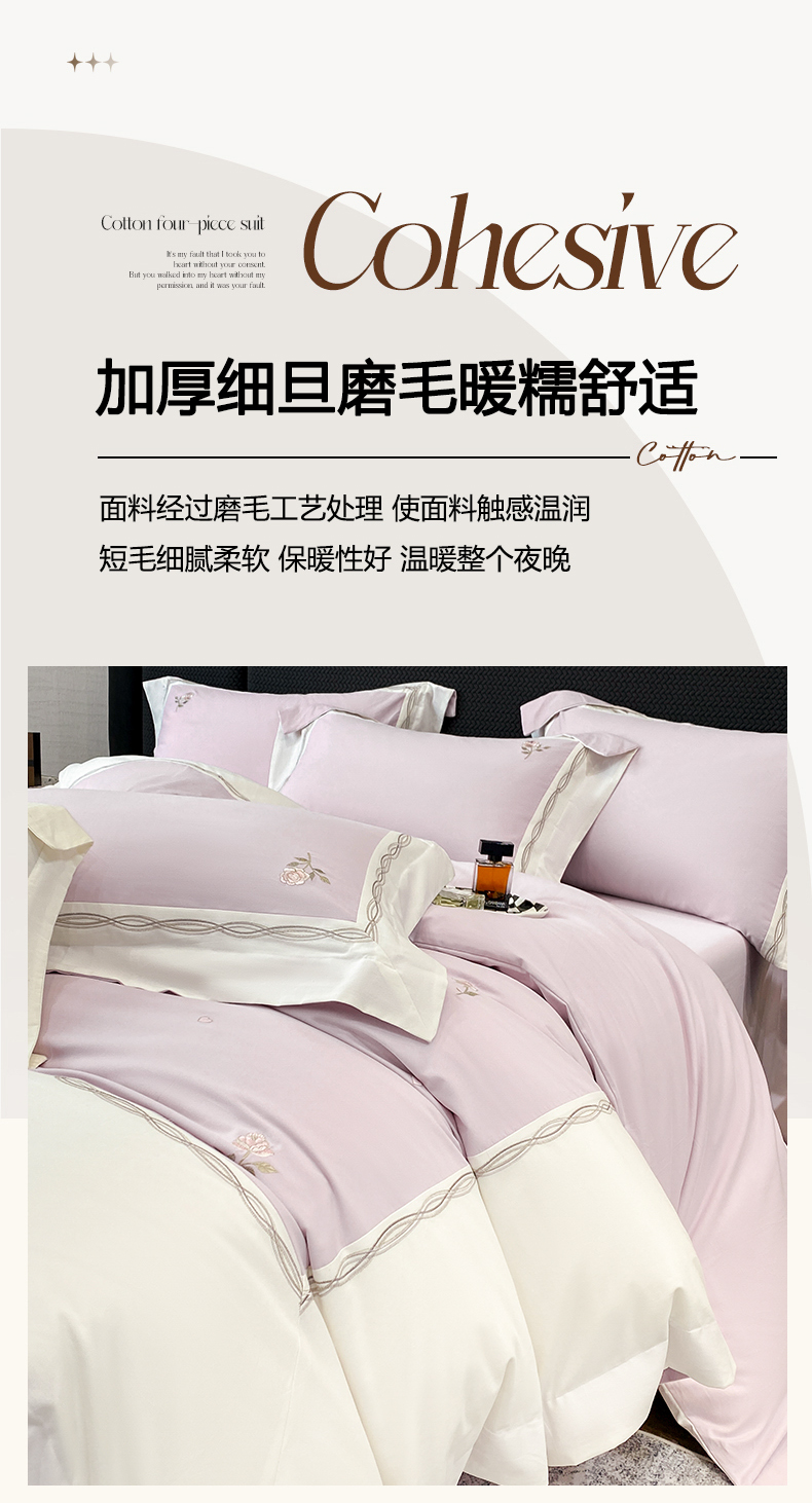 商品名称:丞音家纺 2025新款秋冬新款轻奢超细旦长绒棉细磨毛超柔加厚刺绣四件套纯棉全棉床单绣花床品床笠-艾薇尔系列 艾薇尔-木槿紫
