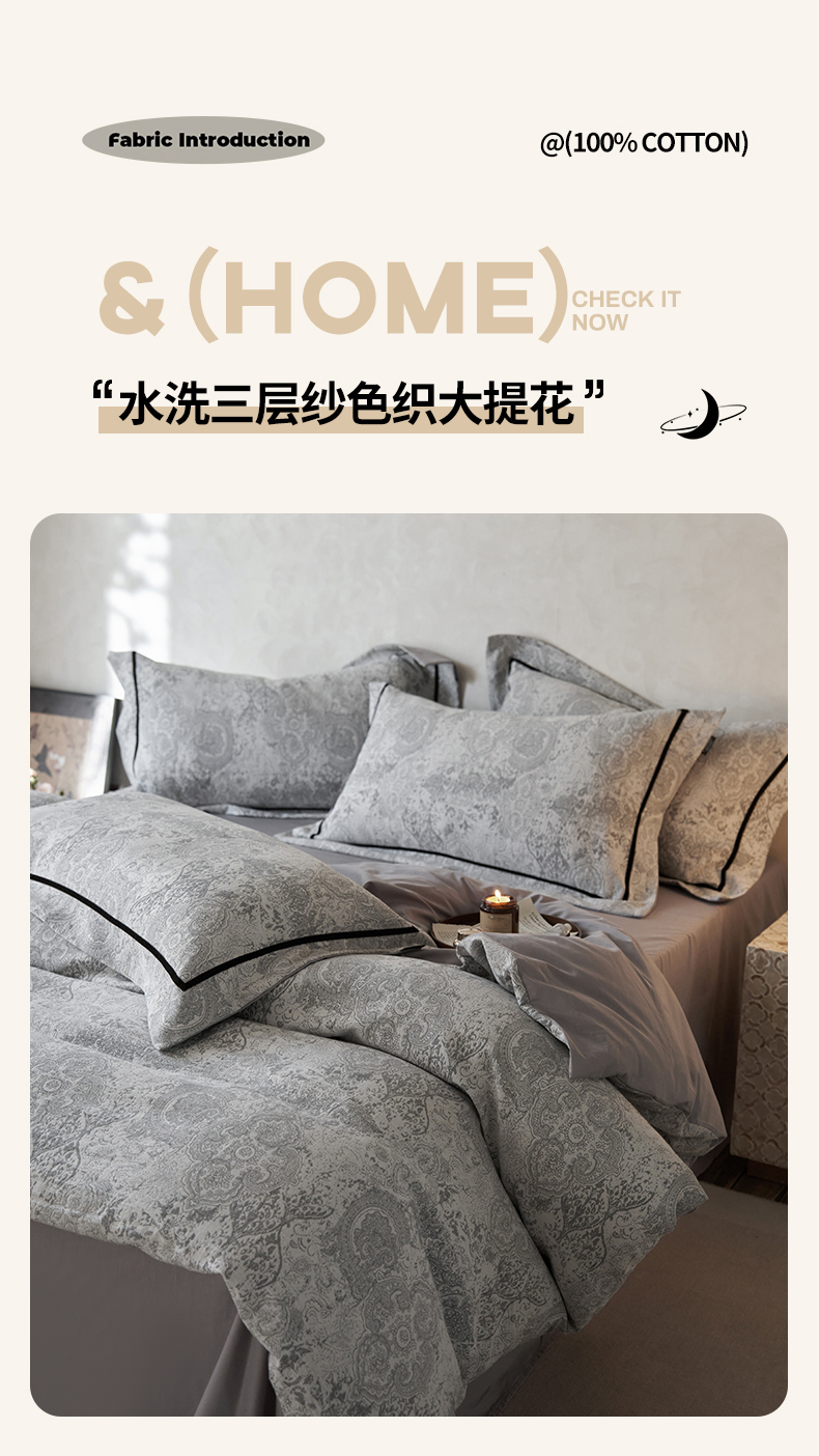 (总)宜代光年 2026新款60S水洗棉全棉纯棉三层纱色织提花夏被四件套系列,繁花-粉,繁花-灰,繁花-咖,繁花-绿,繁花-紫,海棠,林逾静-灰,林逾静-橘,牡丹-粉,牡丹-咖,执笔水墨-灰,执笔水墨-咖