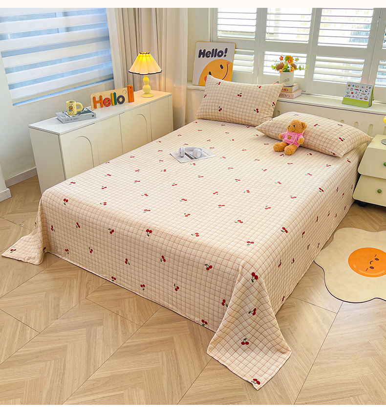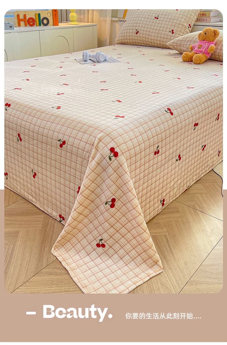 爱屋及屋 2025新款牛奶绒印花床单 樱桃小格