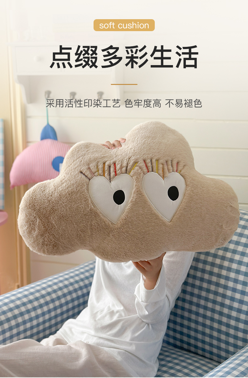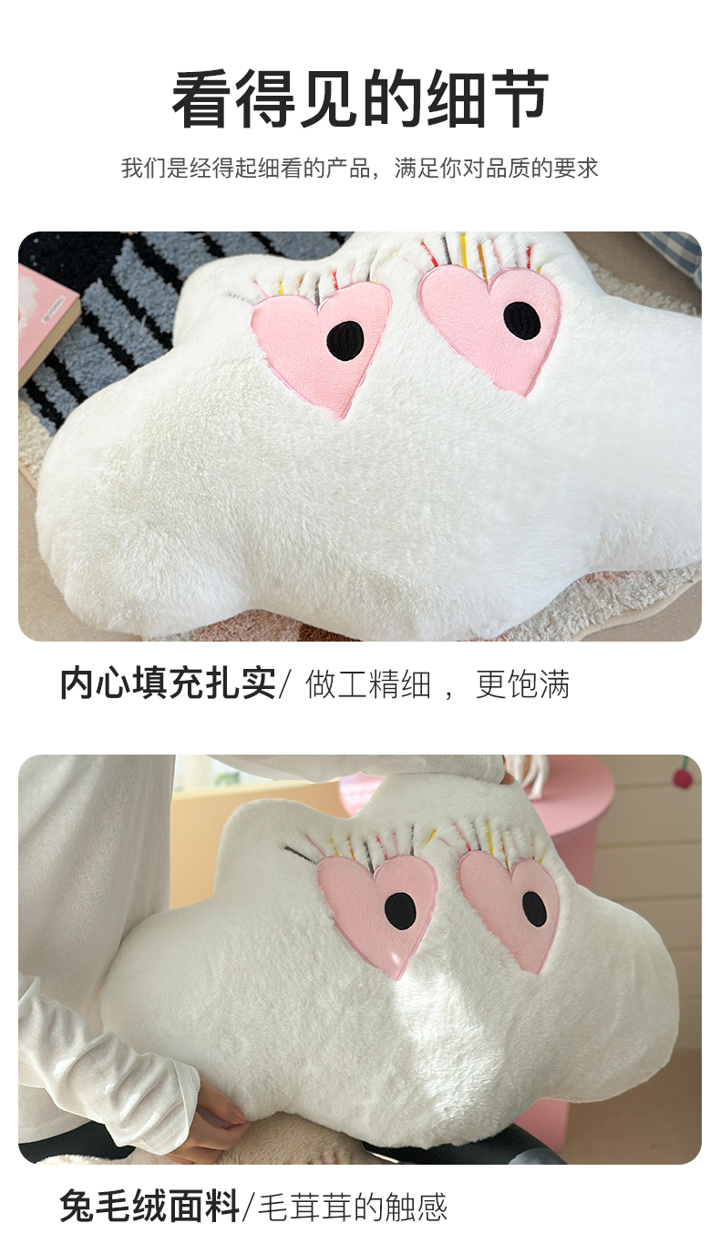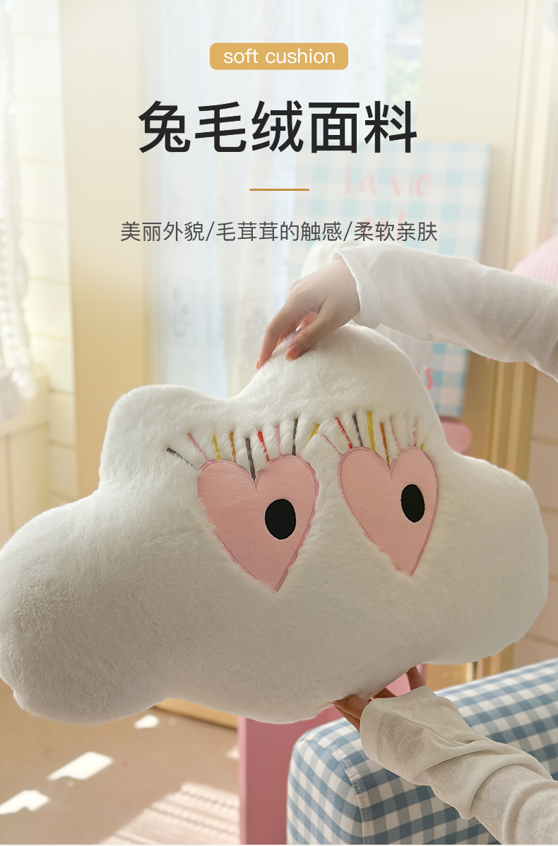 商品名称:美茉家居 2025新款兔毛绒炫彩睫毛云朵抱枕 白色