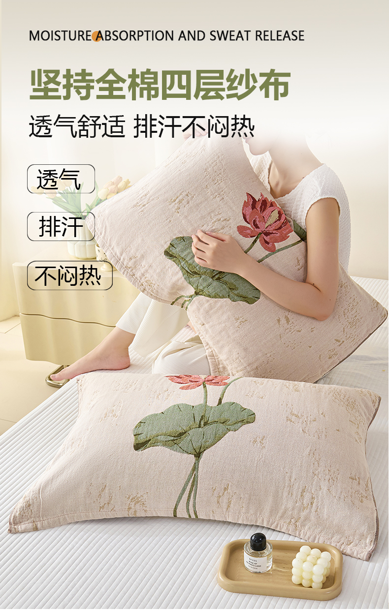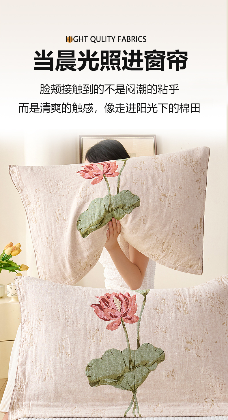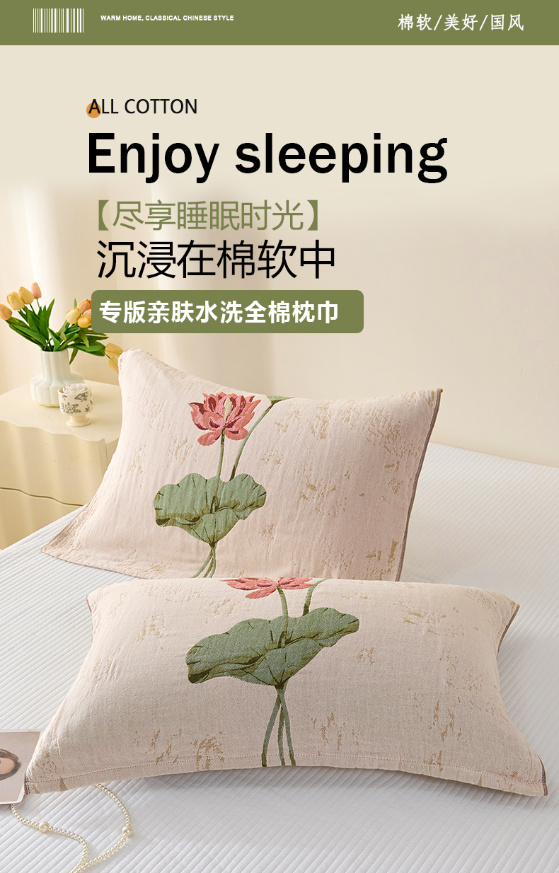 商品名称:棠薇家纺 2025新款纯棉纱布枕巾水洗全棉枕巾色织提花透气排汗预缩水 听荷