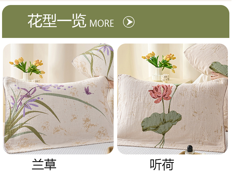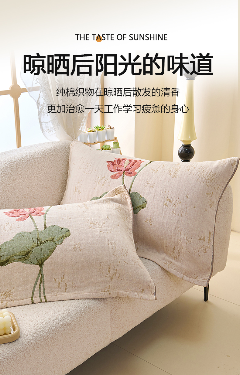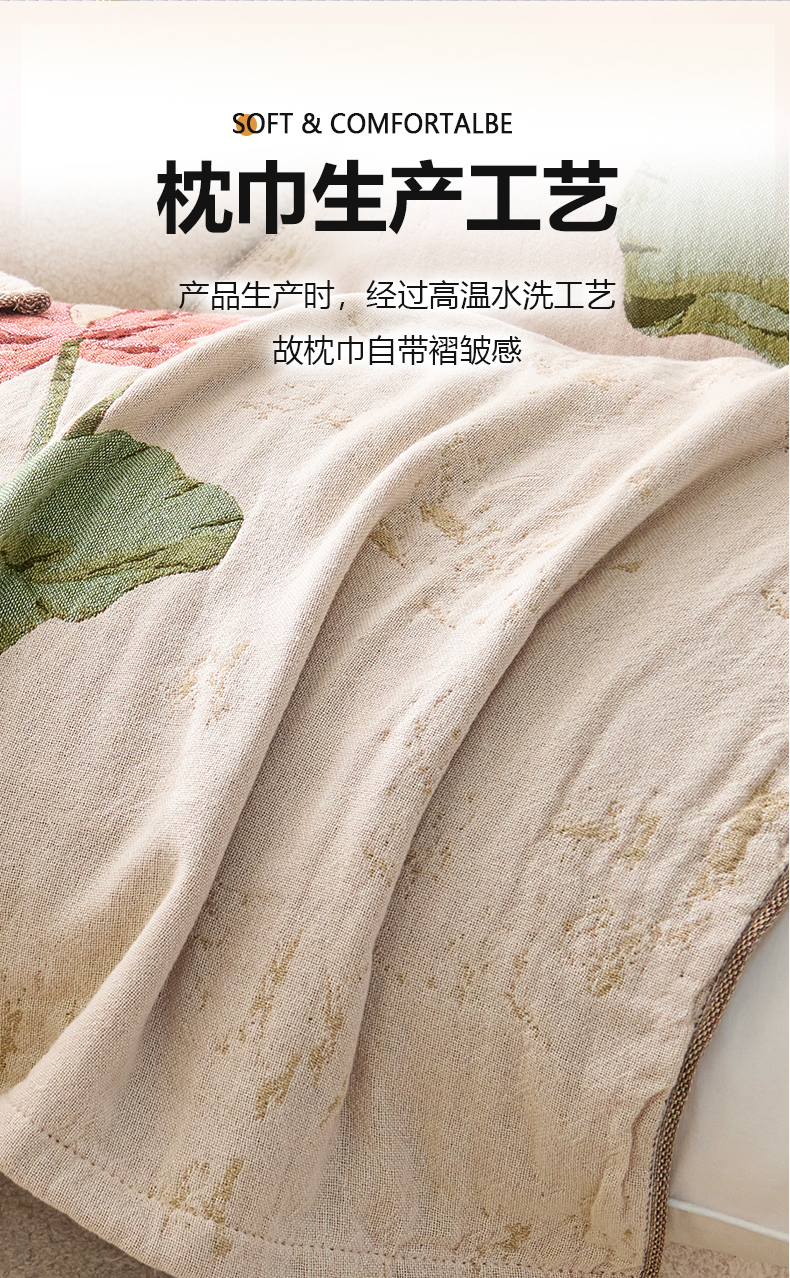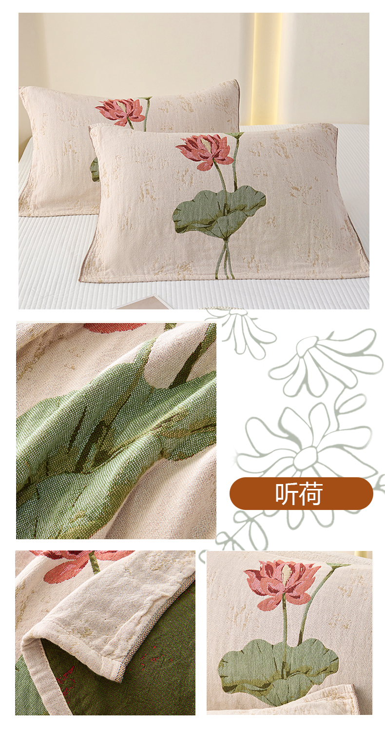 商品名称:棠薇家纺 2025新款纯棉纱布枕巾水洗全棉枕巾色织提花透气排汗预缩水 听荷