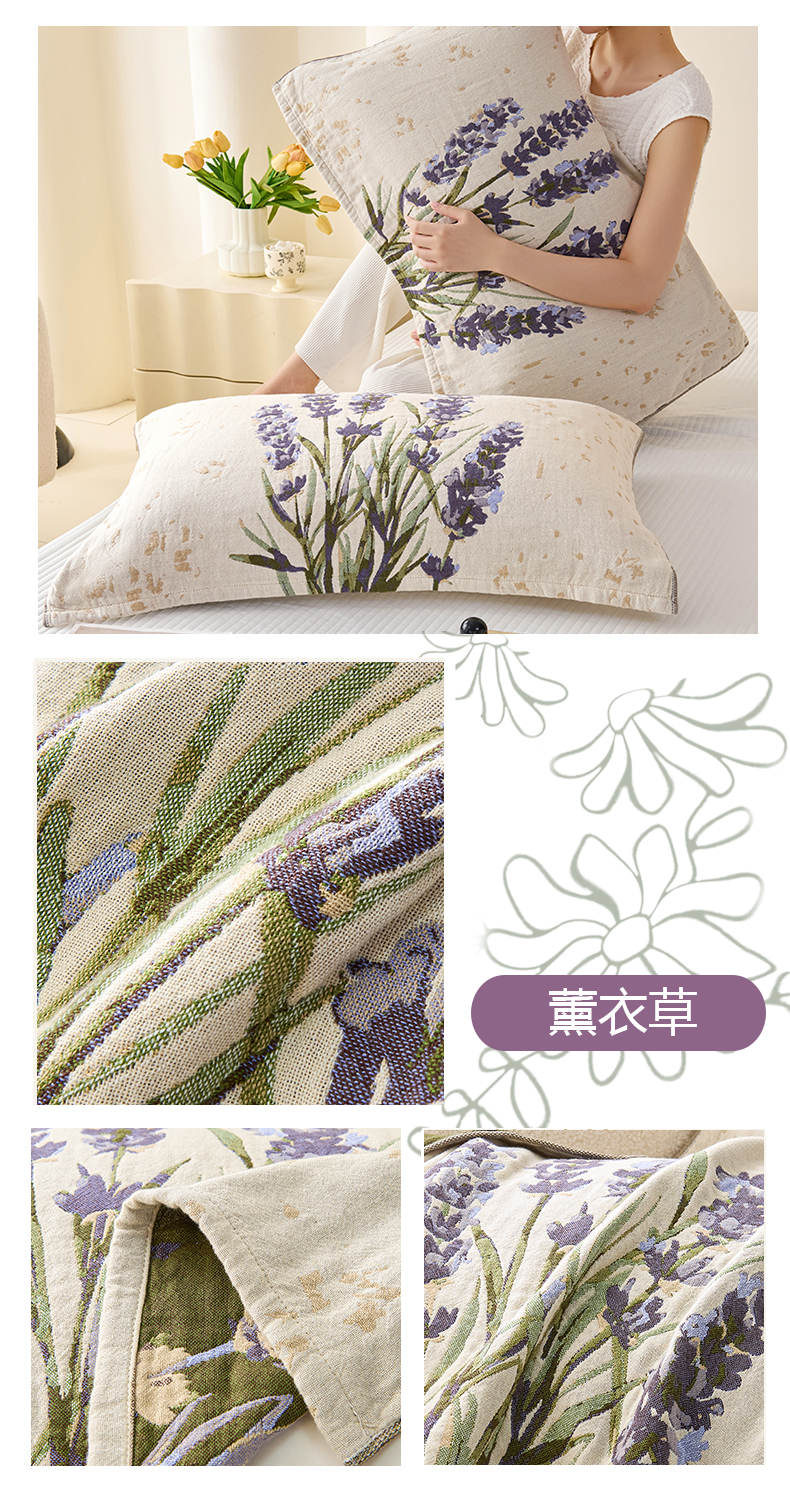 棠薇家纺 2025新款纯棉纱布枕巾水洗全棉枕巾色织提花透气排汗预缩水 听荷