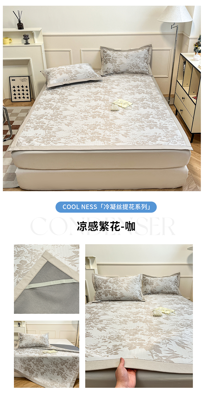 商品名称:宜代光年 2025新款冷凝丝可水洗提花凉感席 凉感繁花-灰