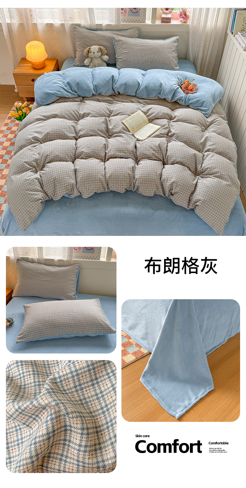 (总)十一家居 2025年秋冬新款A类亲肤云朵水洗棉无印风四件套-叙境系列,柏林蓝格+海青蓝,豆沙小格+粉玉,粉咖小格+粉玉,黑小格+铅灰,蓝咖小格+咖色,蓝小格+海青蓝,糖果小格+海青蓝,桃灰格+卡其