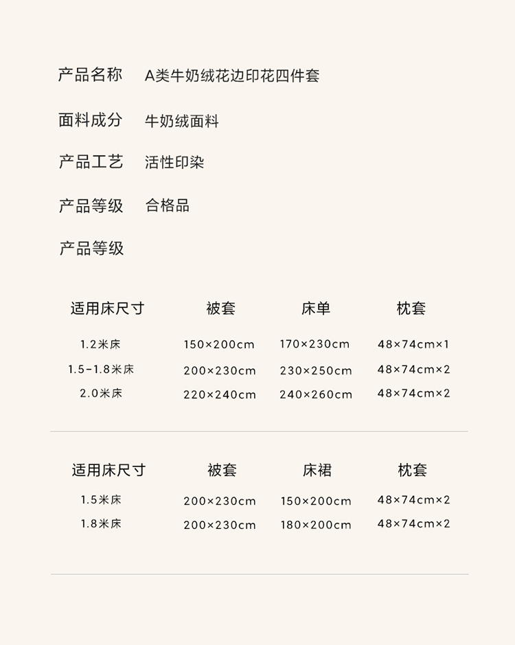 【床裙款】1.5四件套-被套200x230 | ¥130.00 |