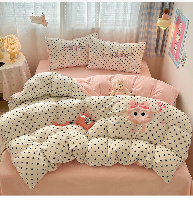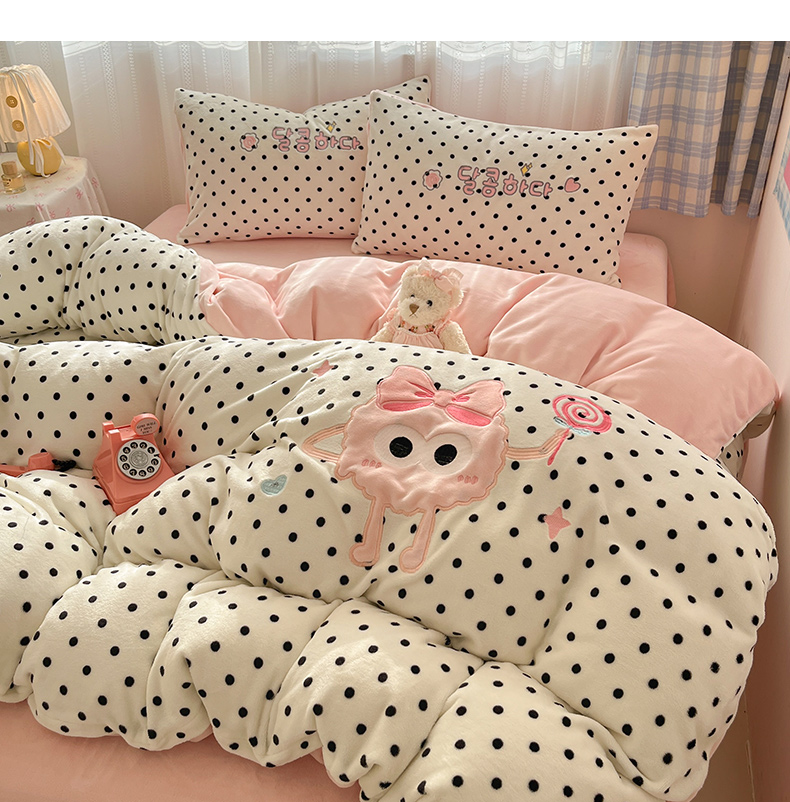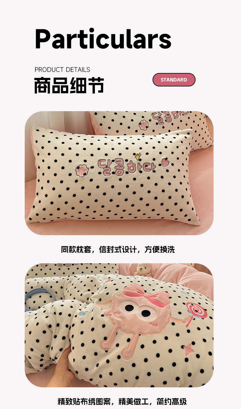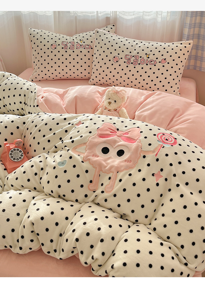 商品名称:红嘴企鹅 2025新款精致贴布绣牛奶绒四件套 棒棒糖-粉