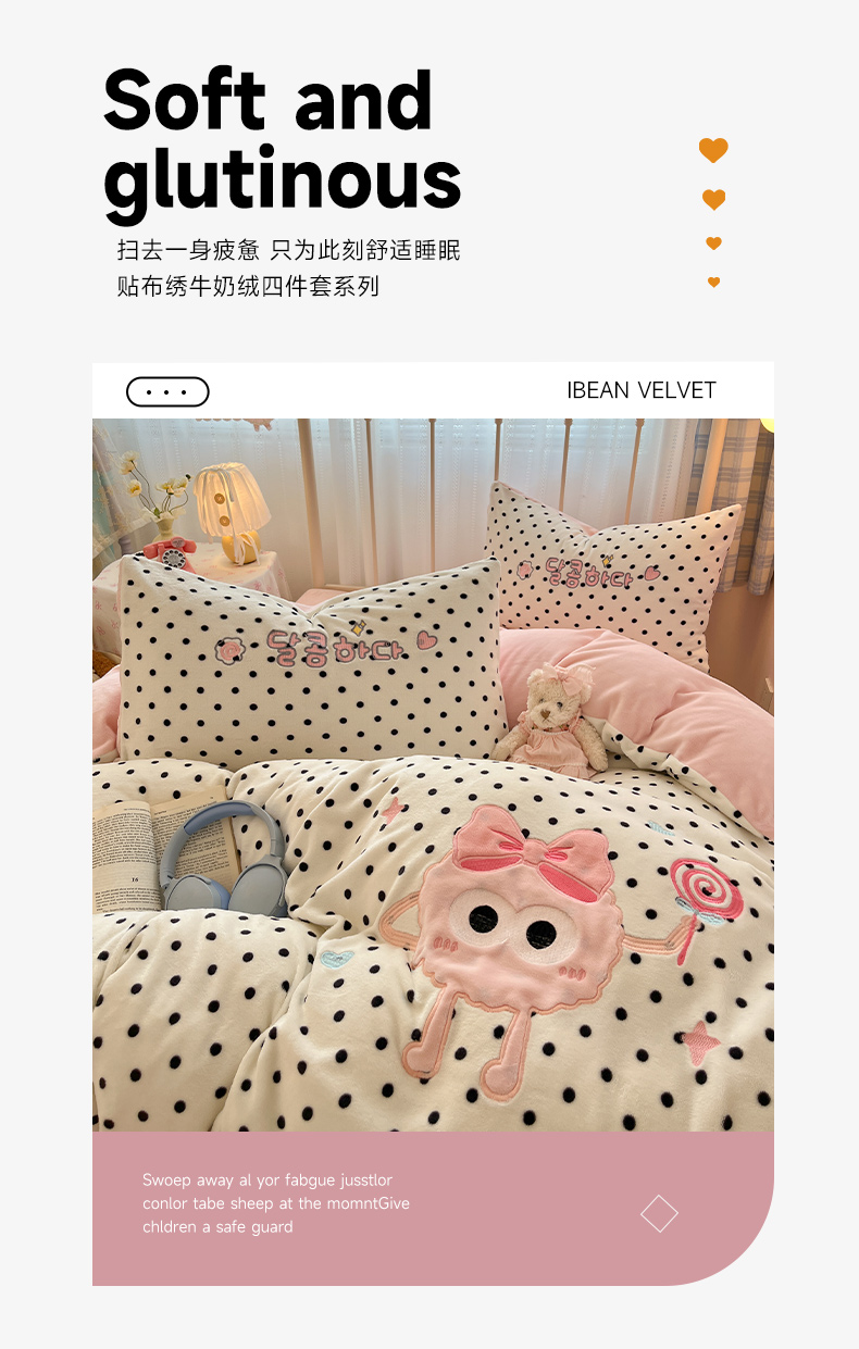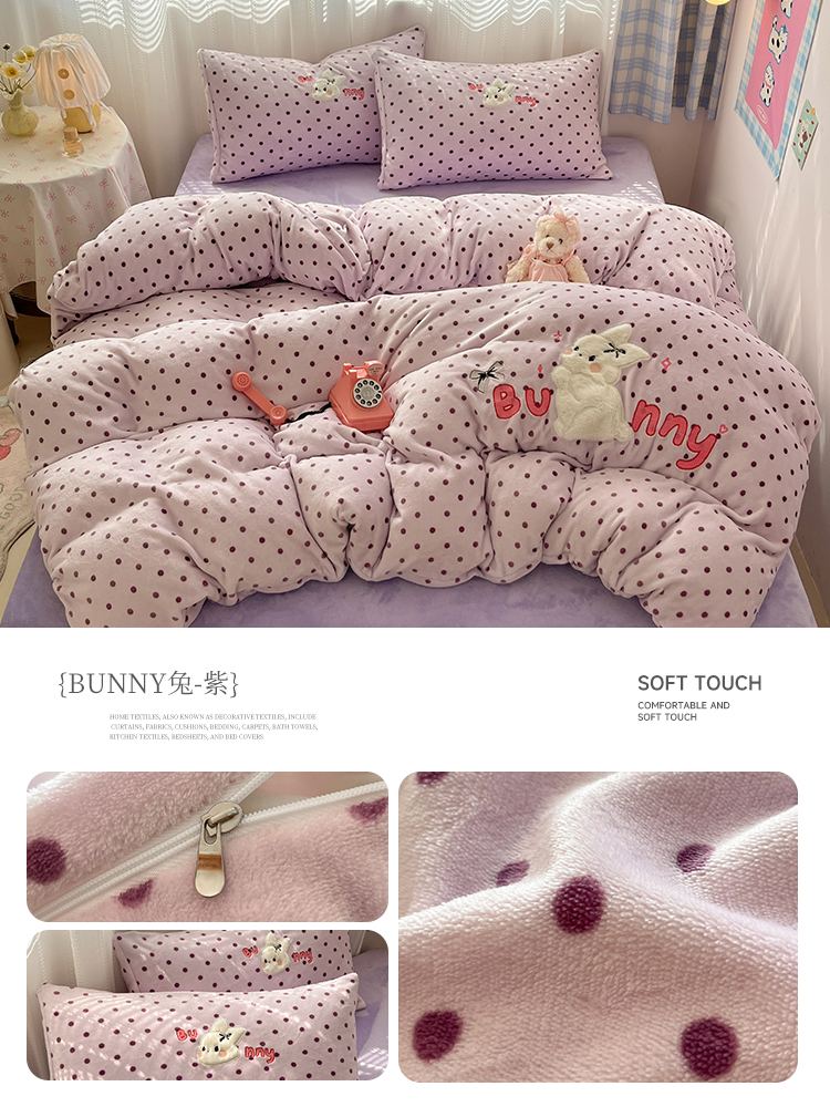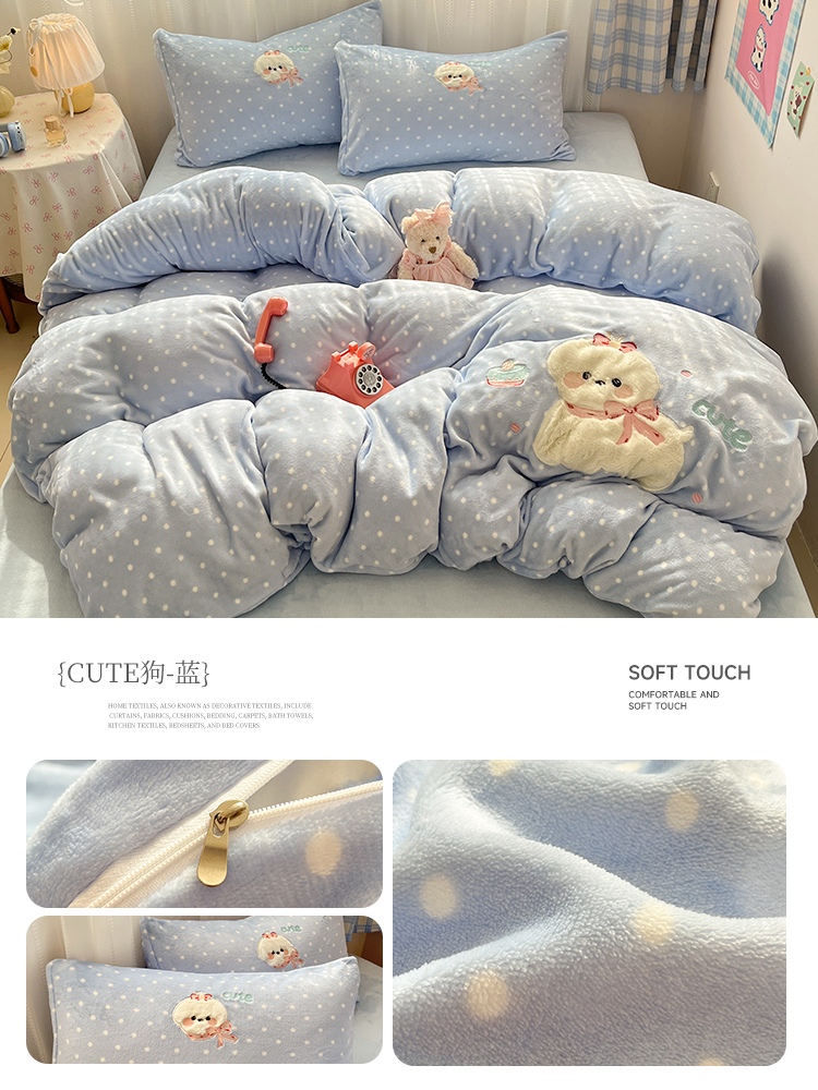 (总)红嘴企鹅 2025新款精致贴布绣牛奶绒四件套,棒棒糖-粉,Bunny兔-粉,Bunny兔-蓝,Bunny兔-紫,Cute狗-粉,Cute狗-蓝,Cute狗-紫