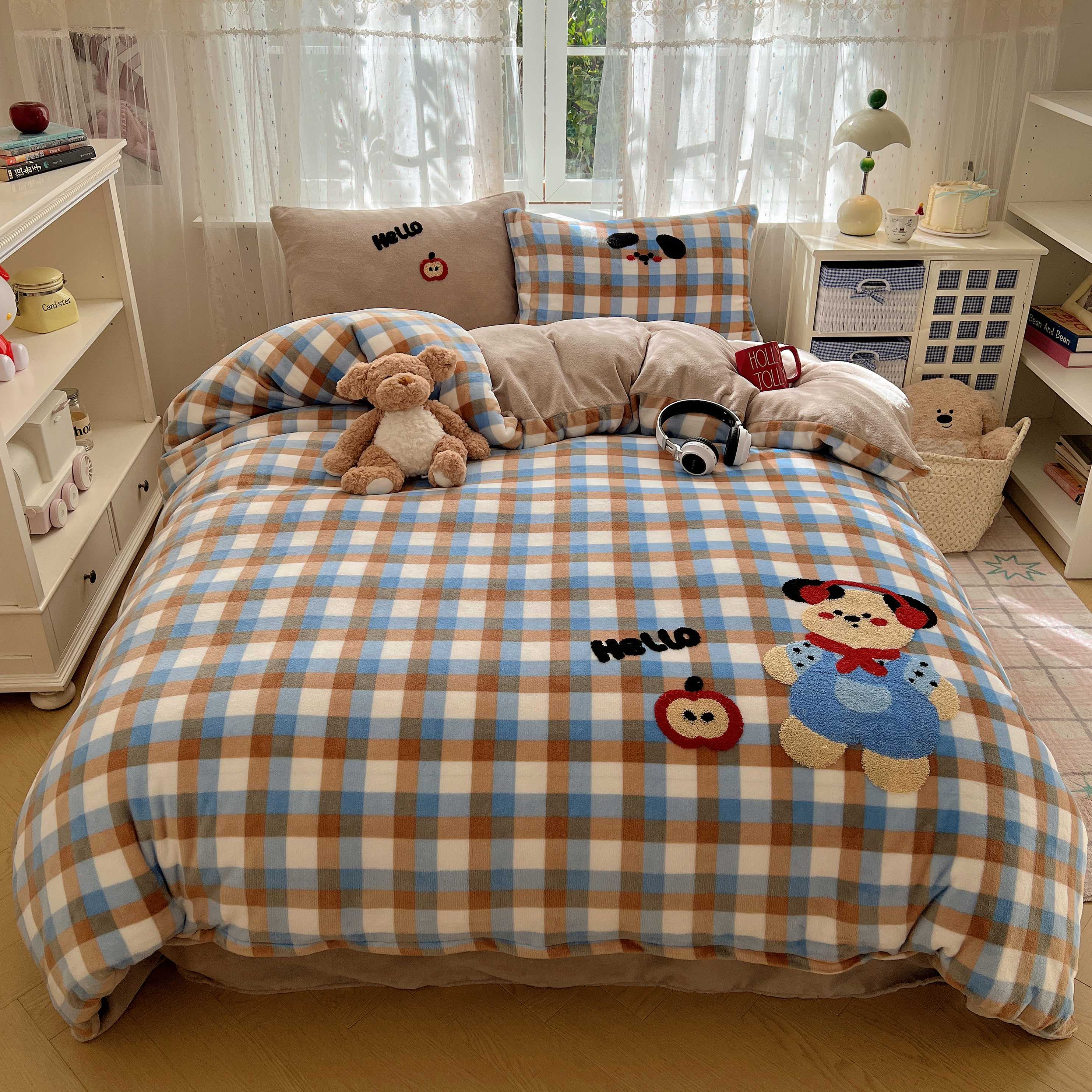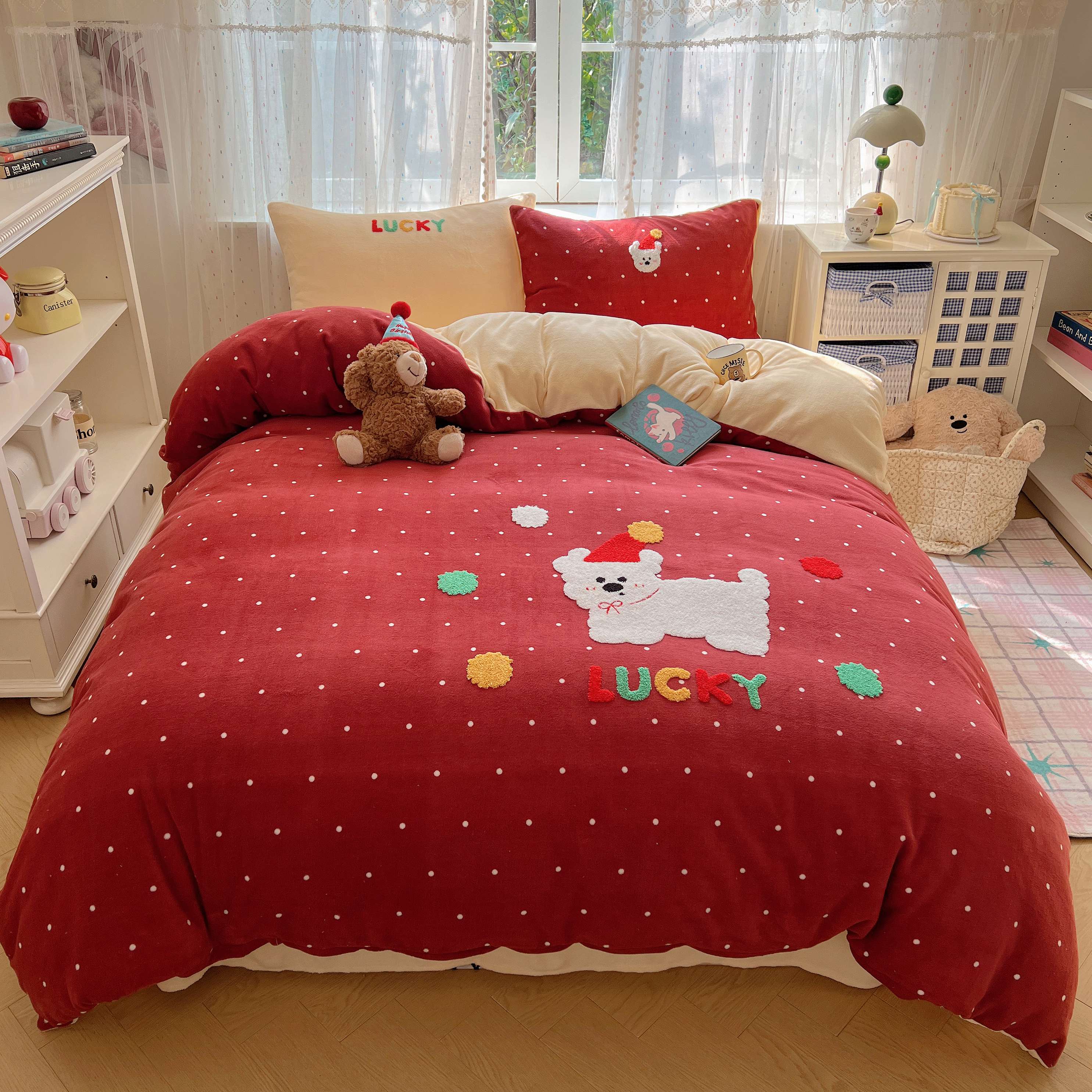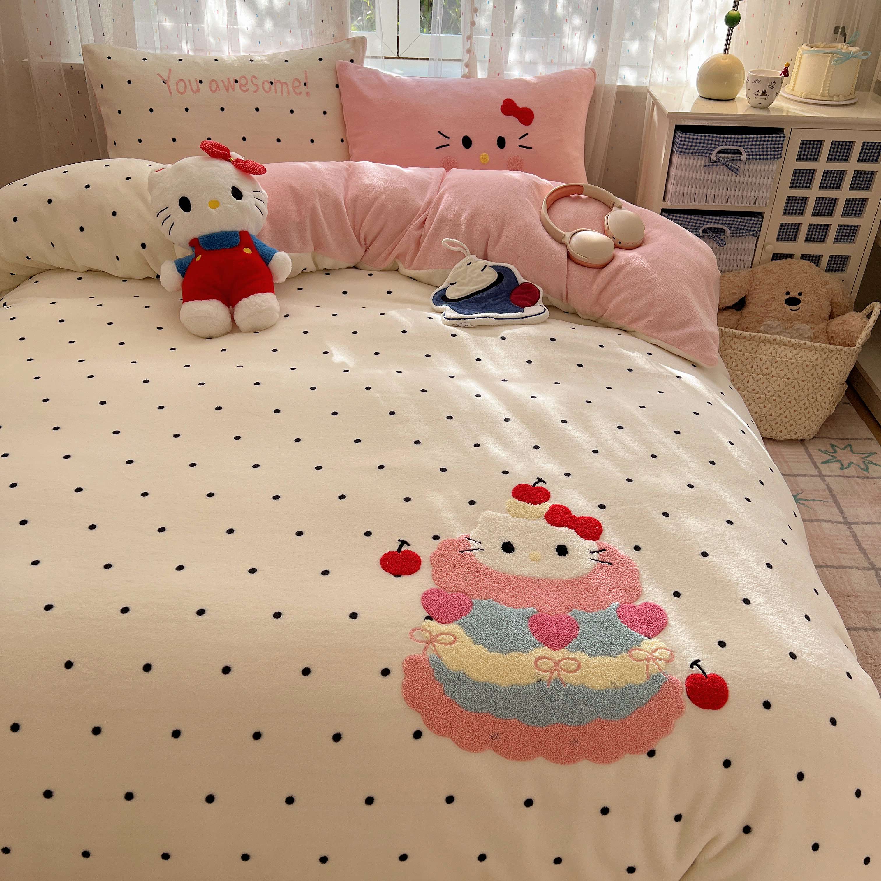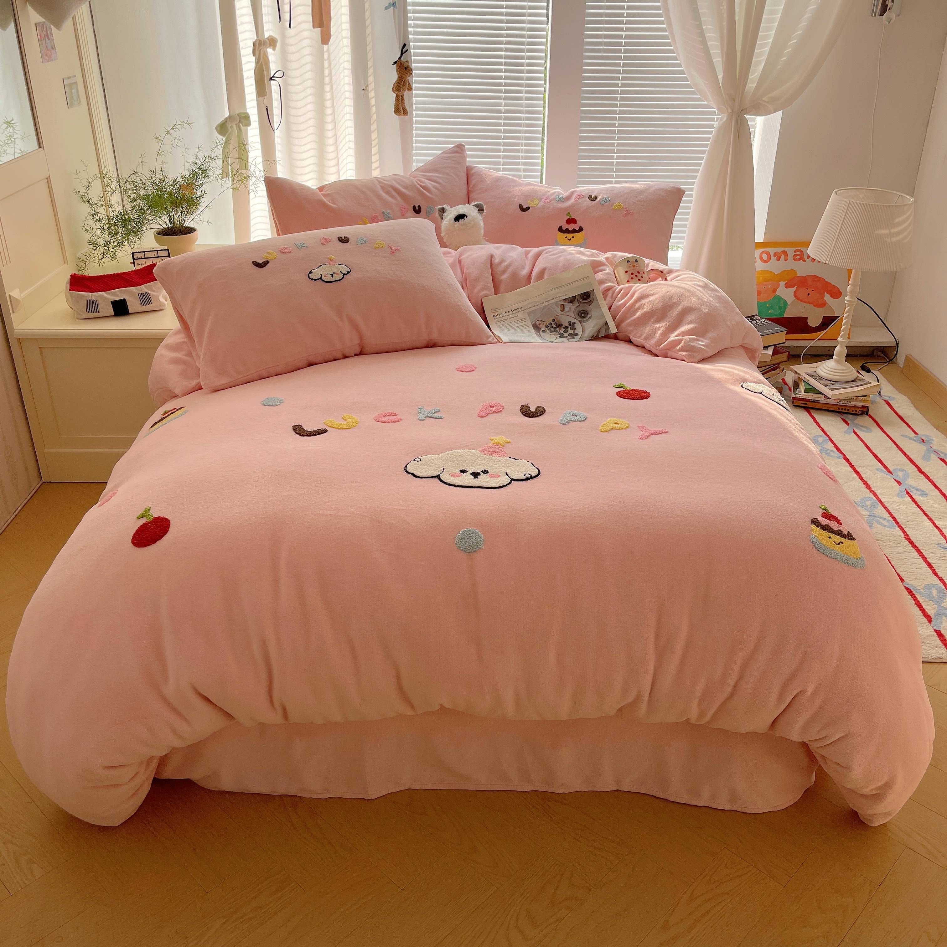 当前位置: 91家纺网 > 商品网购 > 床品套件 > 四件套 > 牛奶绒四件套 > 顾里家纺 2025秋冬新款童趣毛巾绣印花牛奶绒四件套 波点蛋糕猫
