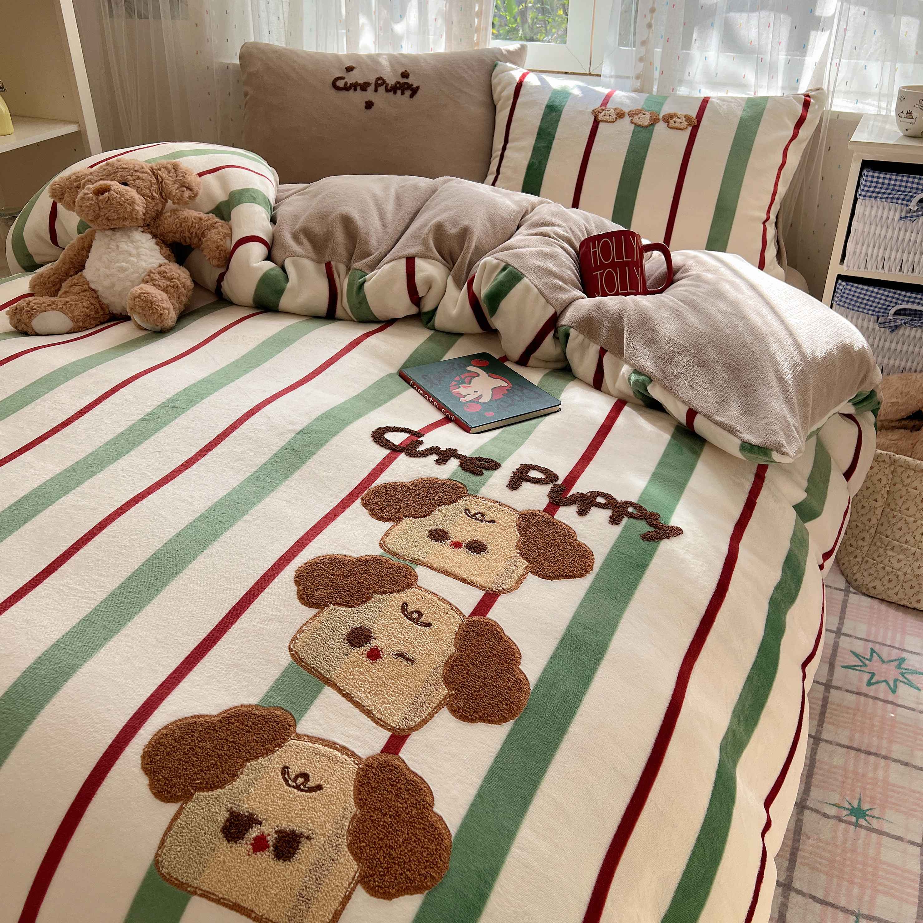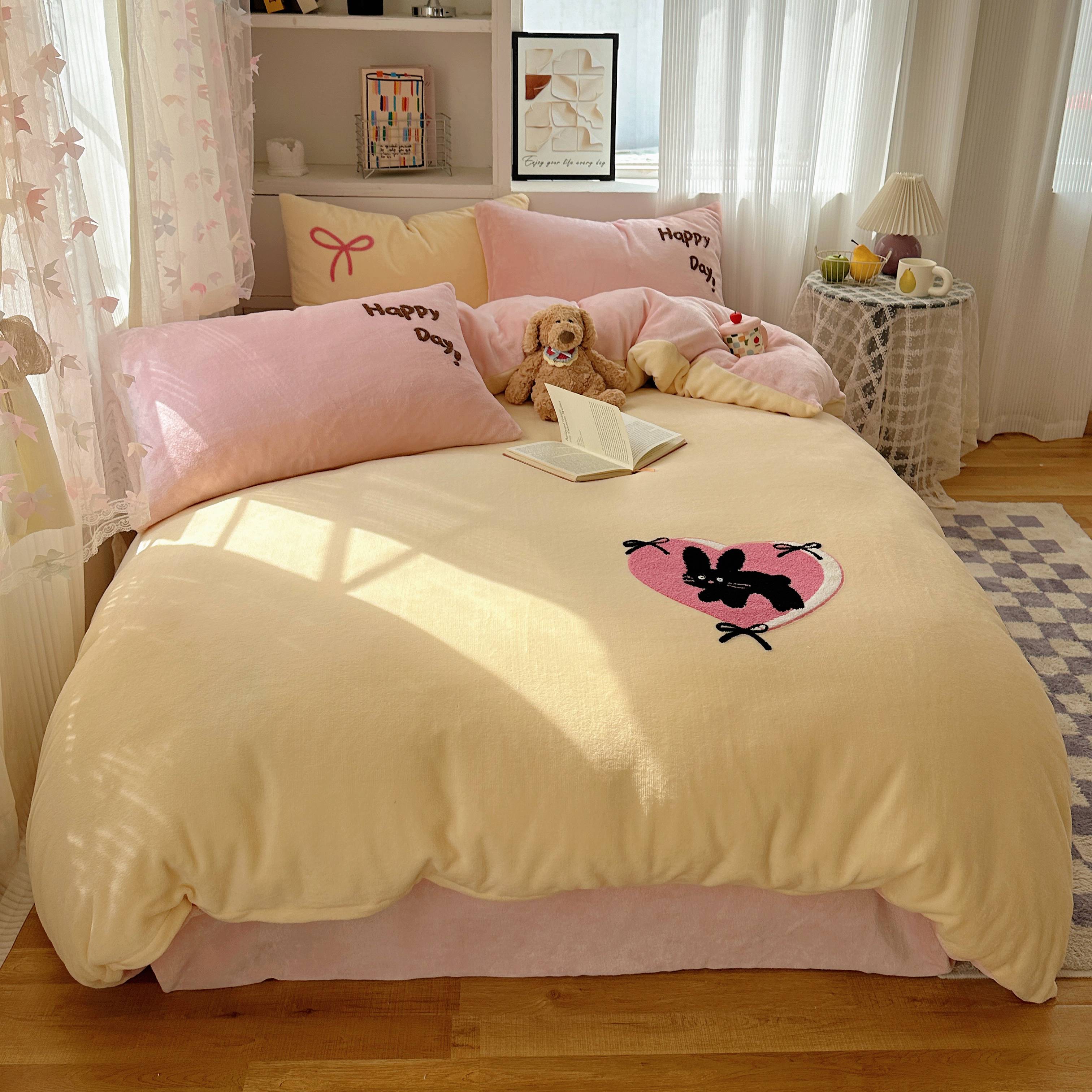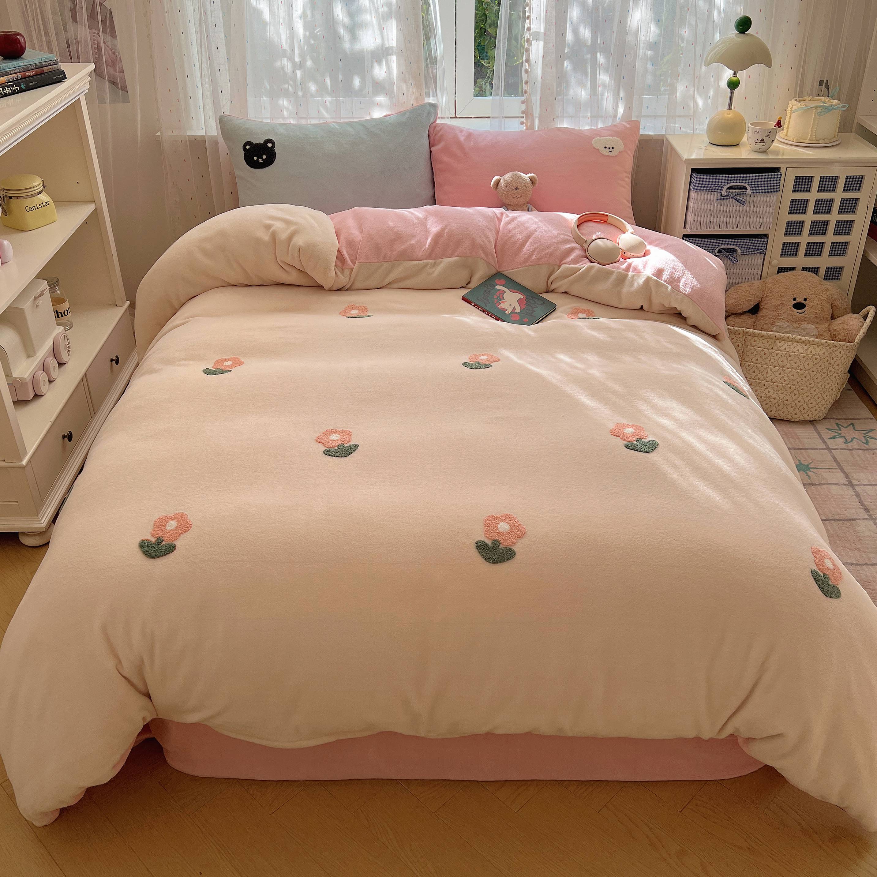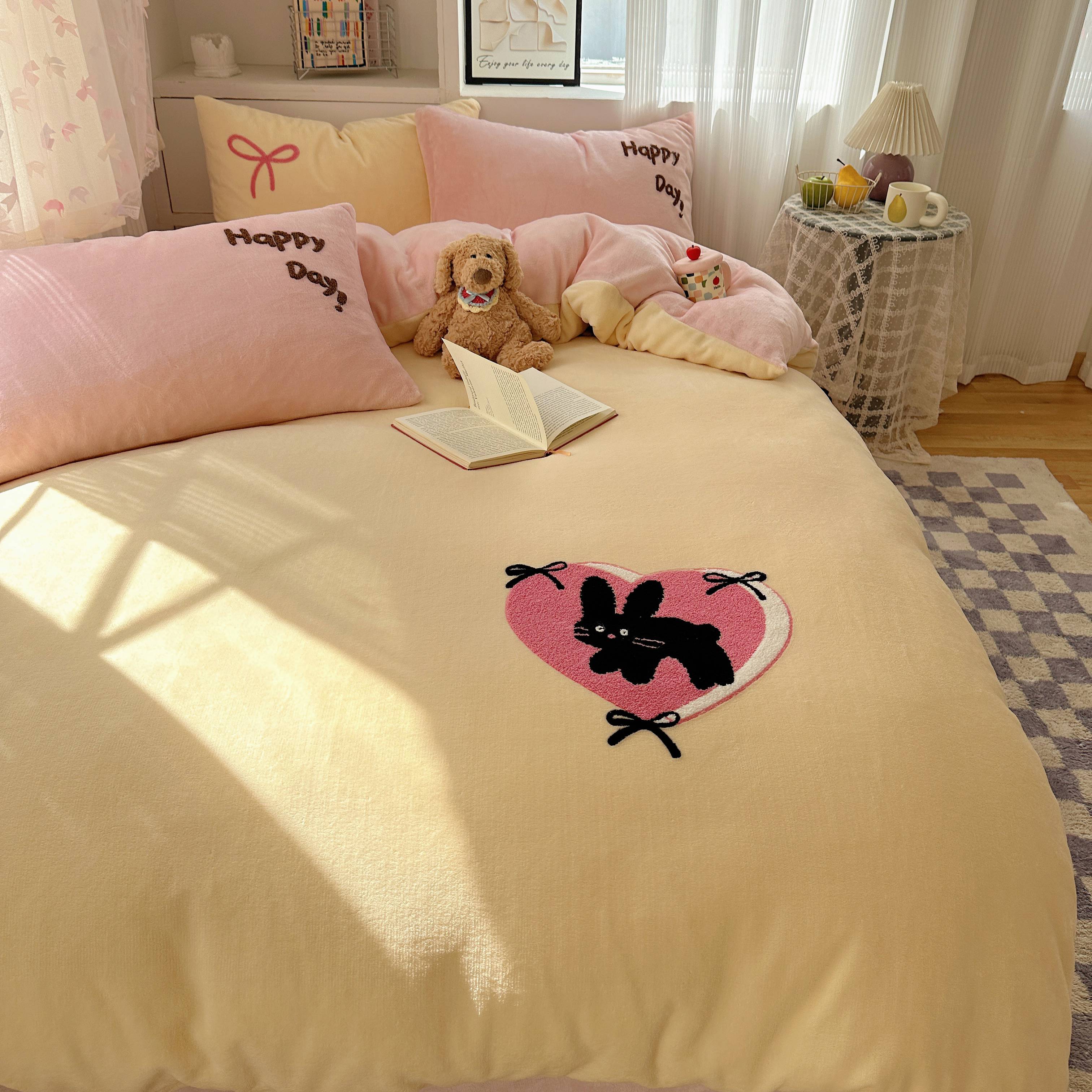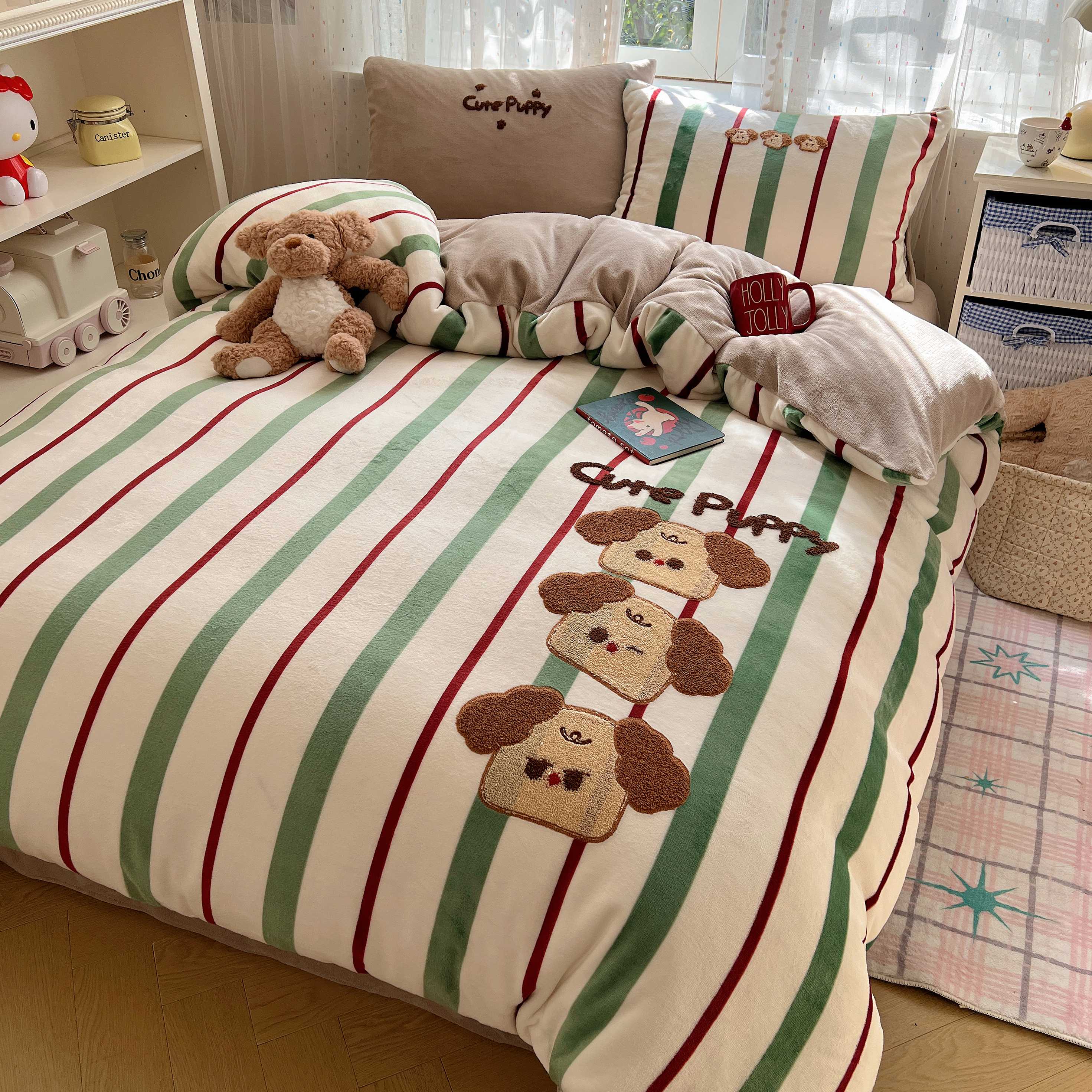 当前位置: 91家纺网 > 商品网购 > 床品套件 > 四件套 > 牛奶绒四件套 > 顾里家纺 2025秋冬新款童趣毛巾绣印花牛奶绒四件套 波点蛋糕猫