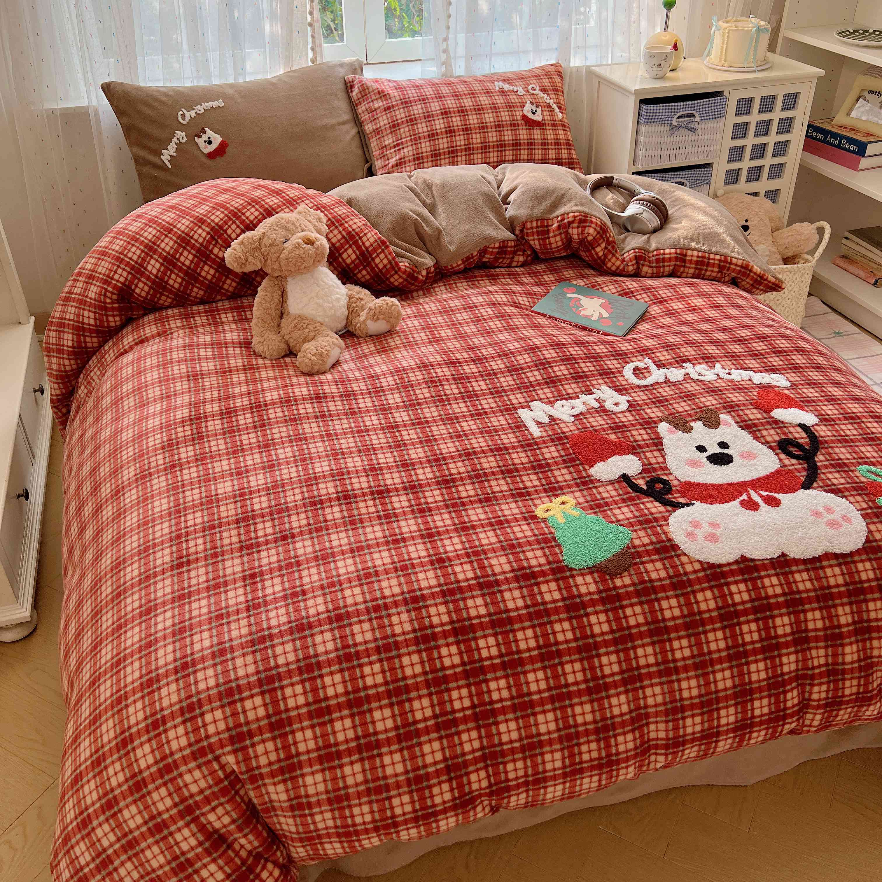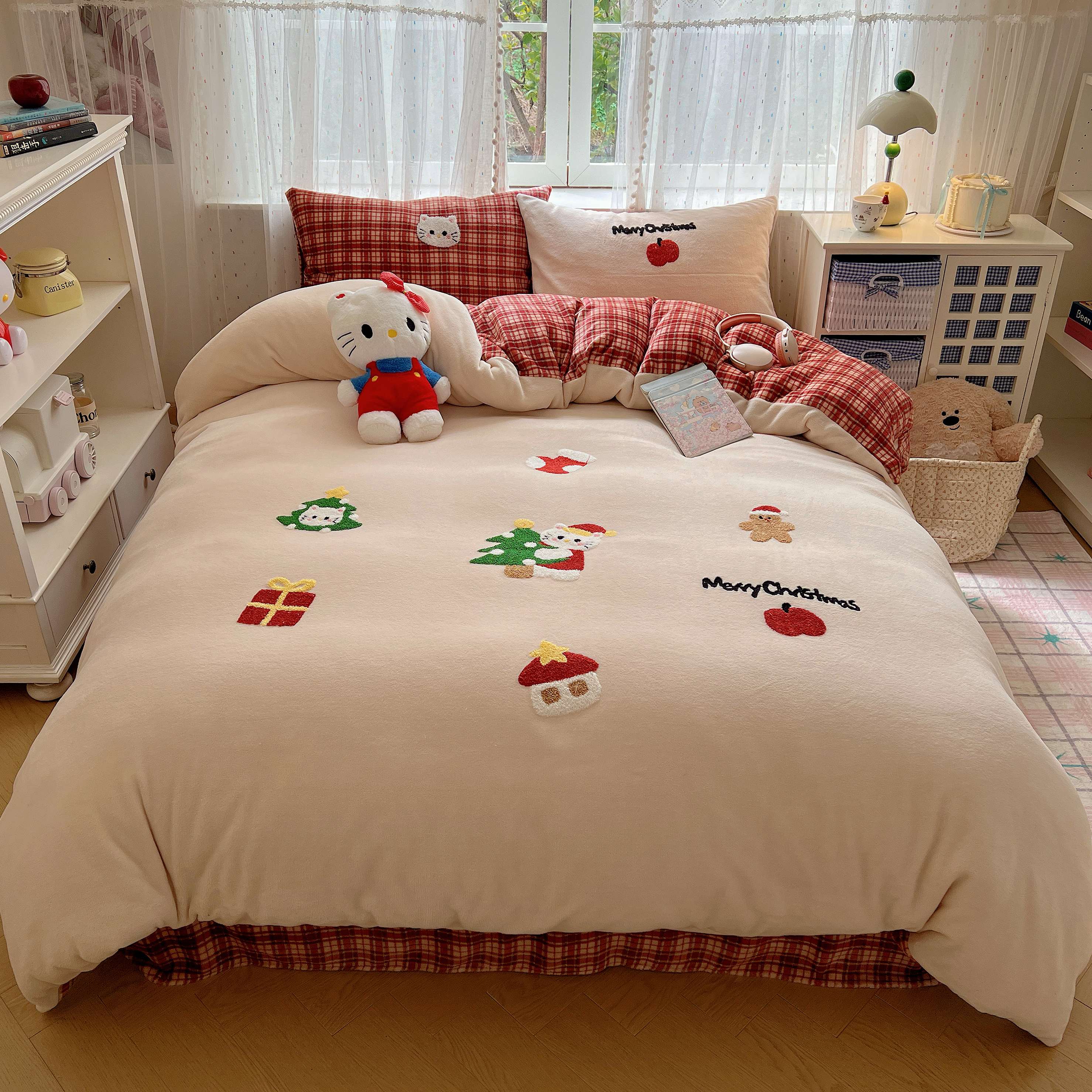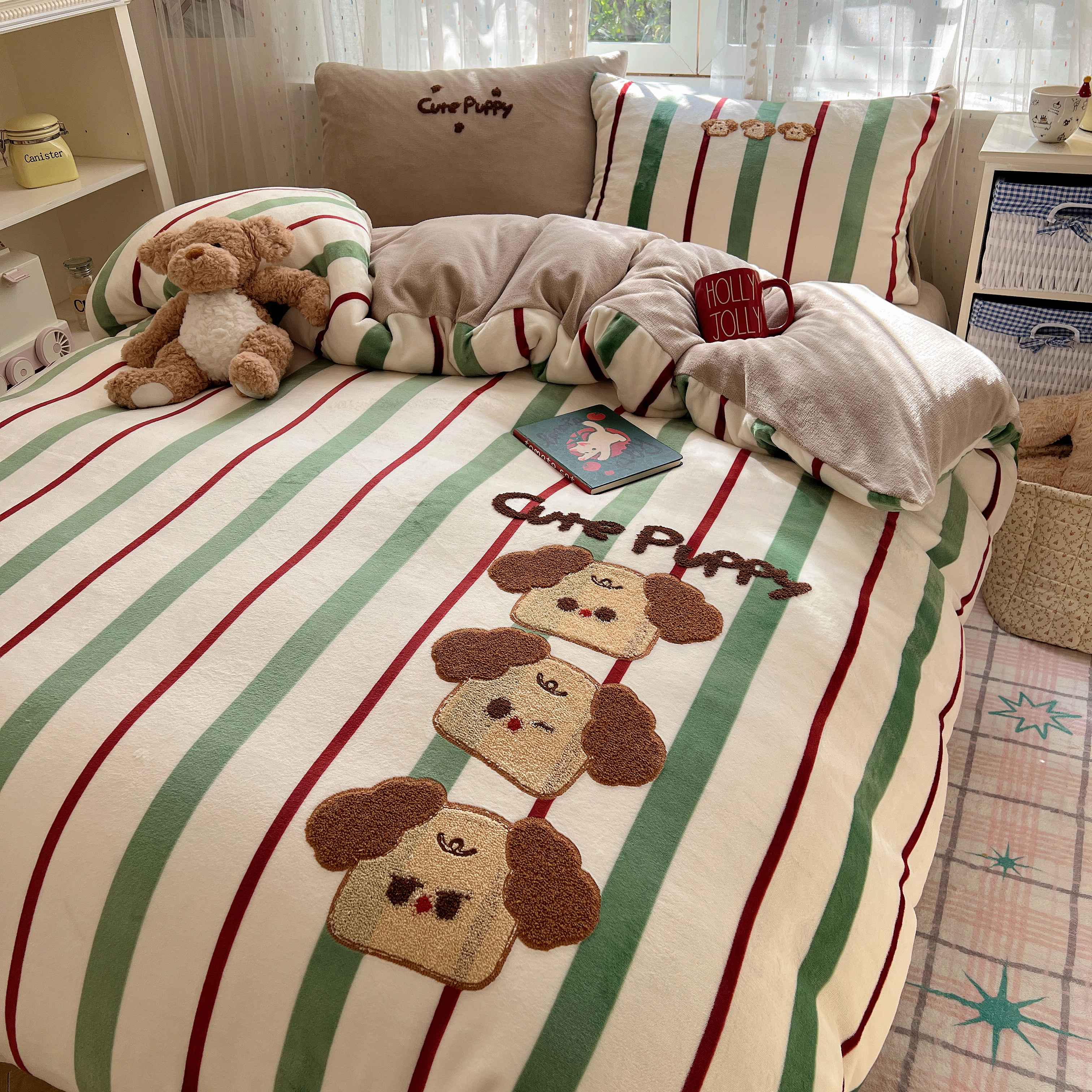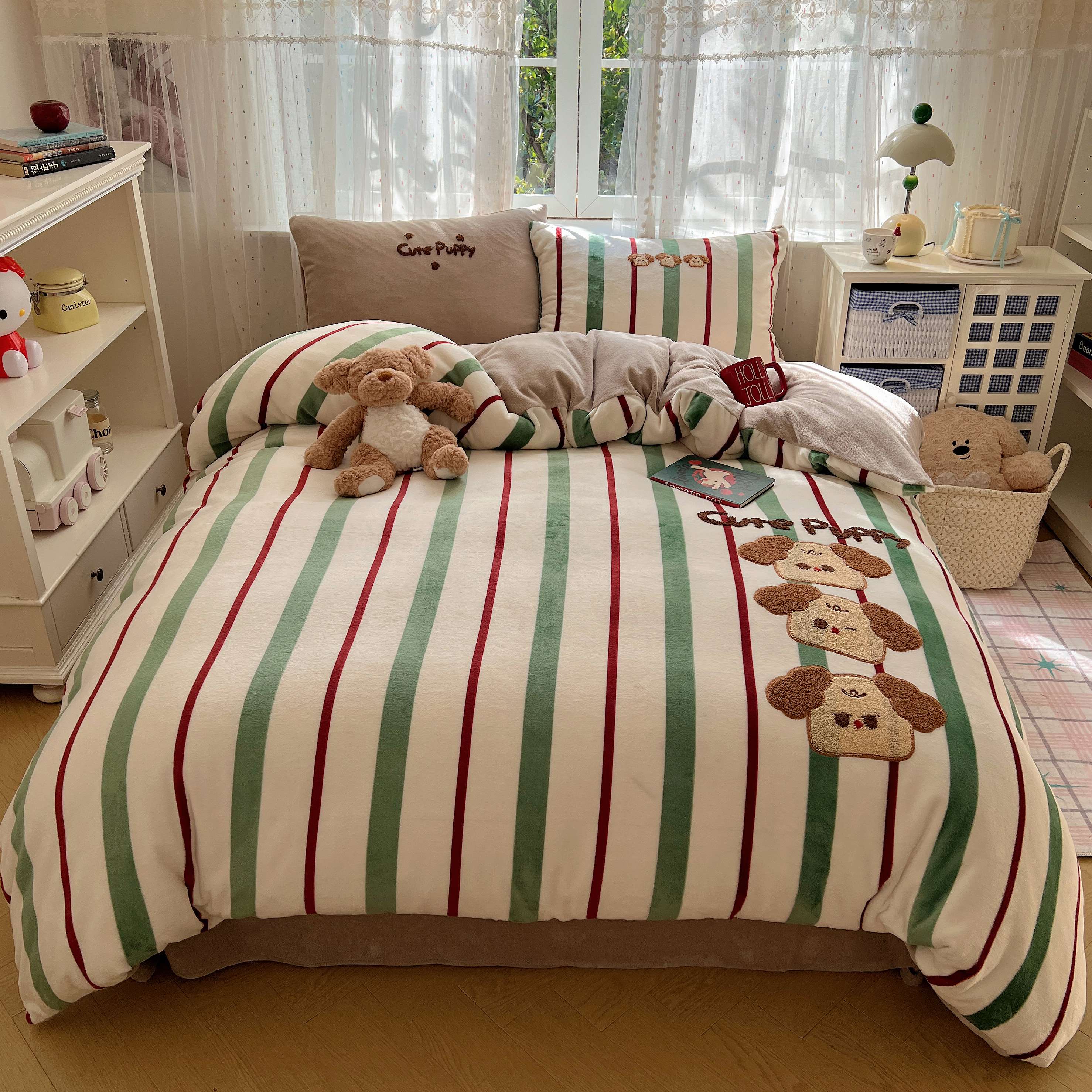当前位置: 91家纺网 > 商品网购 > 床品套件 > 四件套 > 牛奶绒四件套 > 顾里家纺 2025秋冬新款童趣毛巾绣印花牛奶绒四件套 波点蛋糕猫