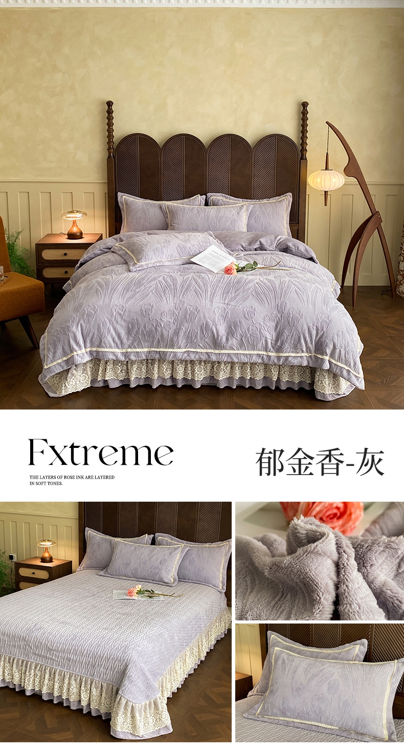 (总)美伦美焕 2025新款全消光雕花绒蕾丝床盖款四件套,葵花-粉玉,葵花-灰,葵花-天空蓝,浅梦-豆沙,浅梦-灰,浅梦-香槟,郁金香-粉玉,郁金香-灰,郁金香-米咖,郁金香-天空蓝