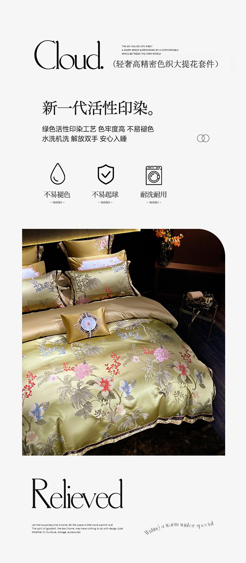 当前位置: 91家纺网 > 商品网购 > 床品套件 > 四件套 > 提花四件套 > OL家纺 2025新款高精密色织大提花四件套-系列二 花开锦绣