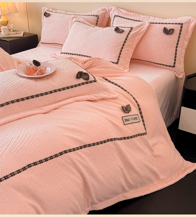 慕木家纺 2025新款牛奶绒雕花织带款梦巢系列四件套 梦巢-玉粉
