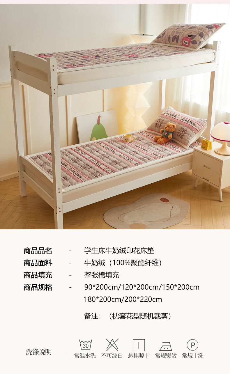 当前位置: 91家纺网 > 商品网购 > 床垫/床褥 > 普通床垫 > 慕木家纺 2025新款学生床牛奶绒印花床垫床护垫 床褥垫-蝶舞飞