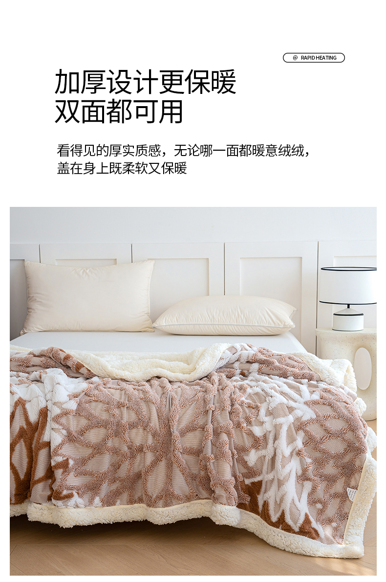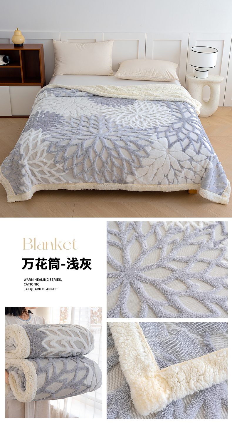 商品名称:(总)枋梢家纺 2025新款万花筒阳离子提花镂空塔芙绒羊羔绒保暖午睡双层毛毯办公室盖毯