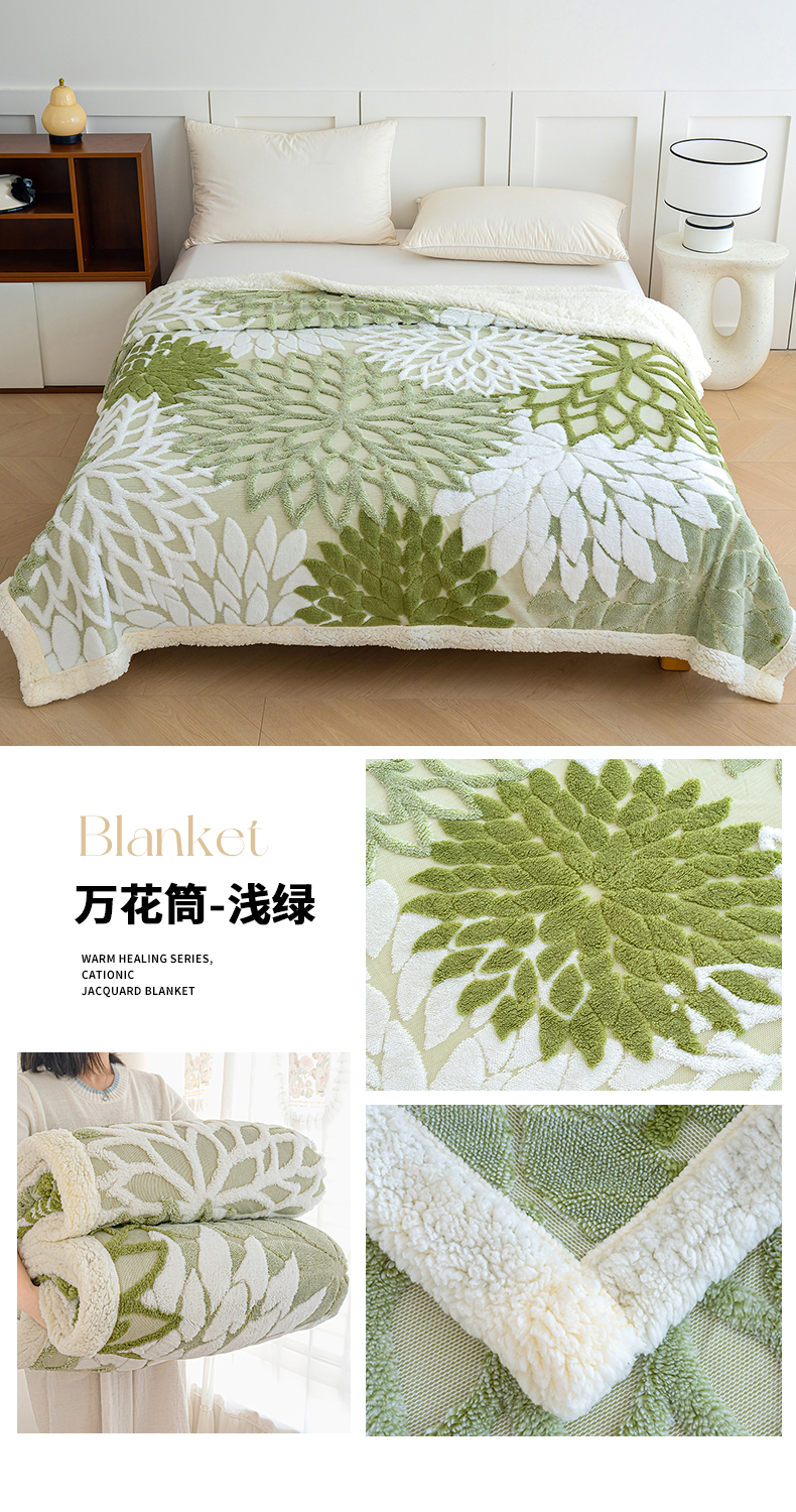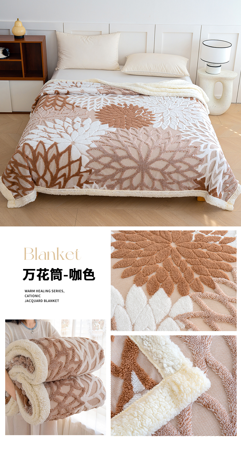 (总)枋梢家纺 2025新款万花筒阳离子提花镂空塔芙绒羊羔绒保暖午睡双层毛毯办公室盖毯