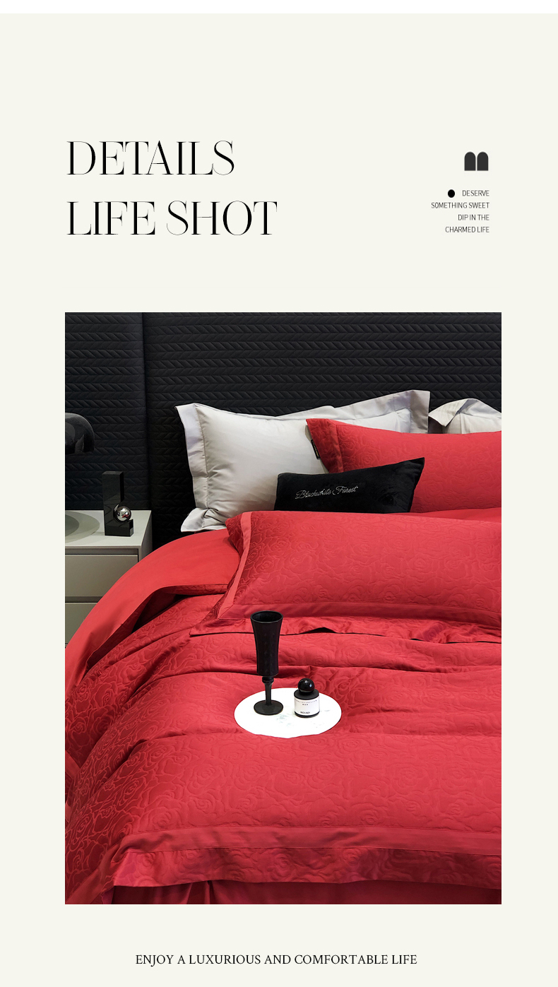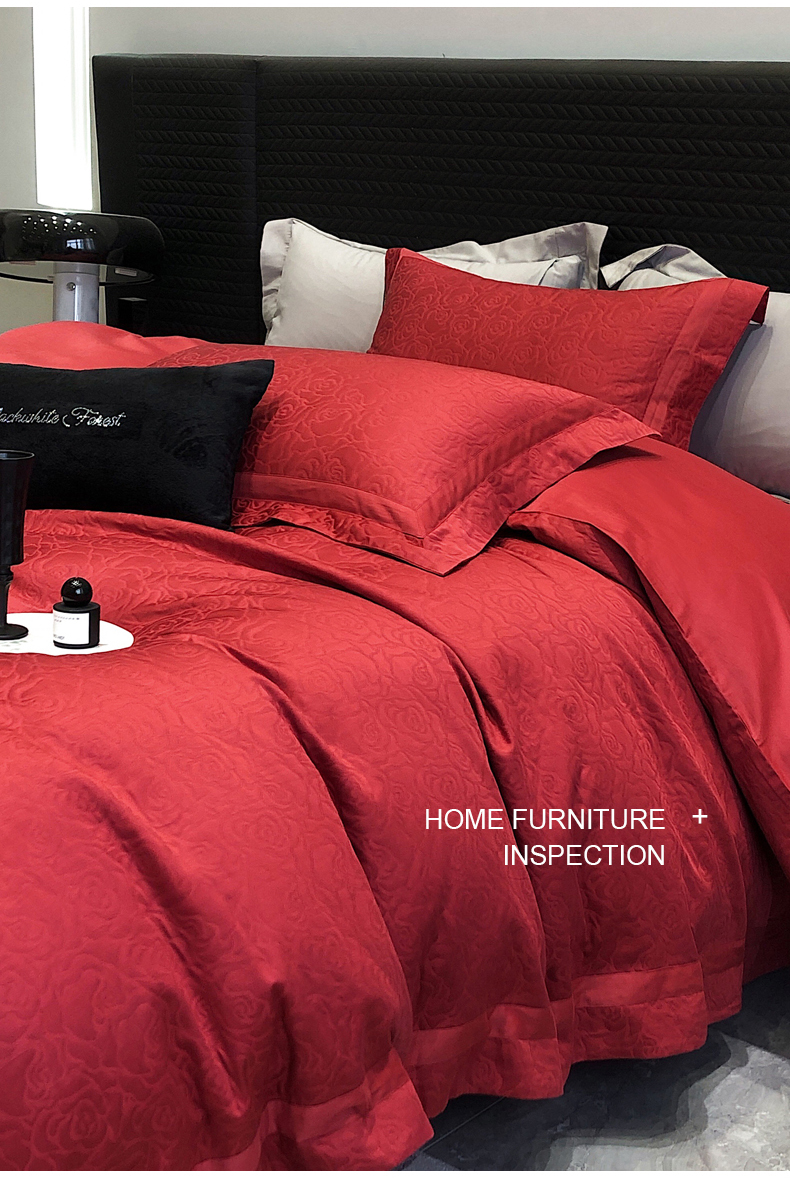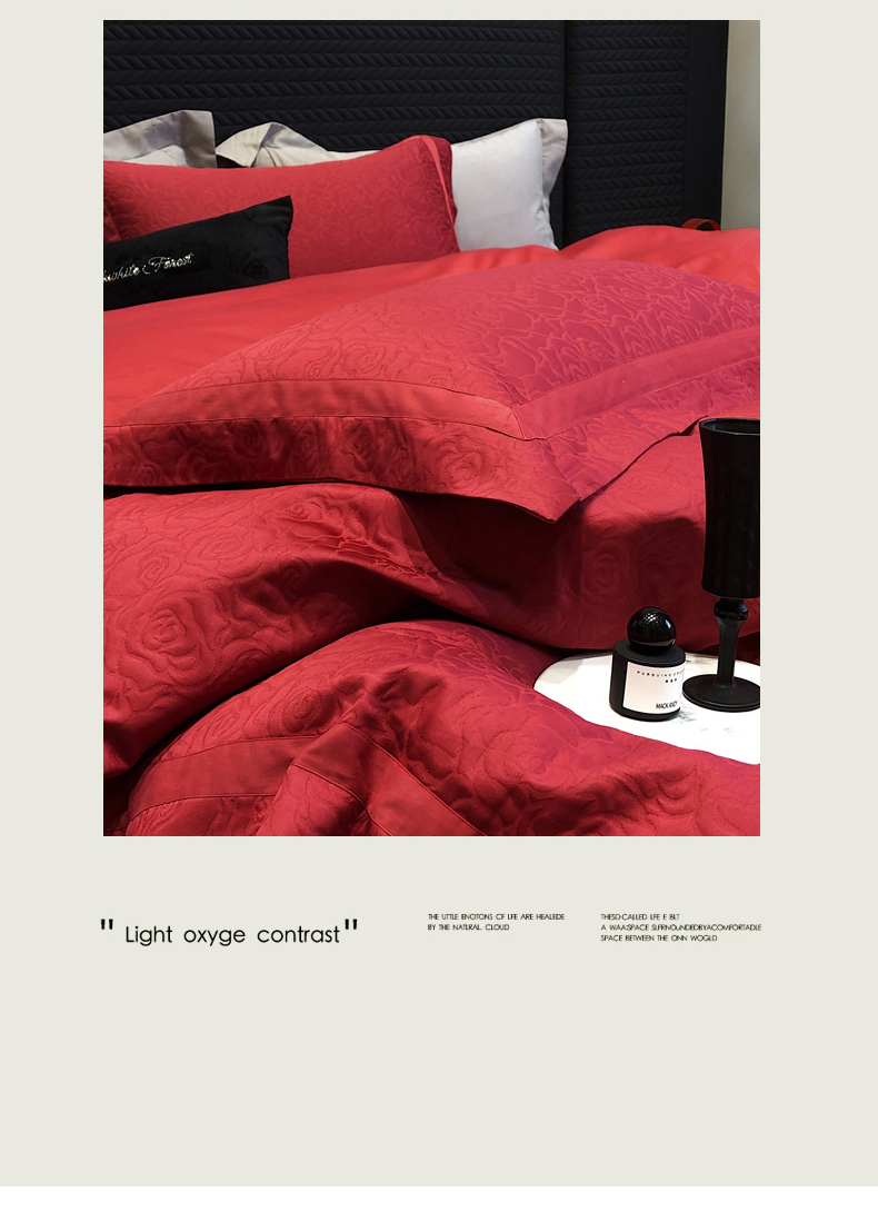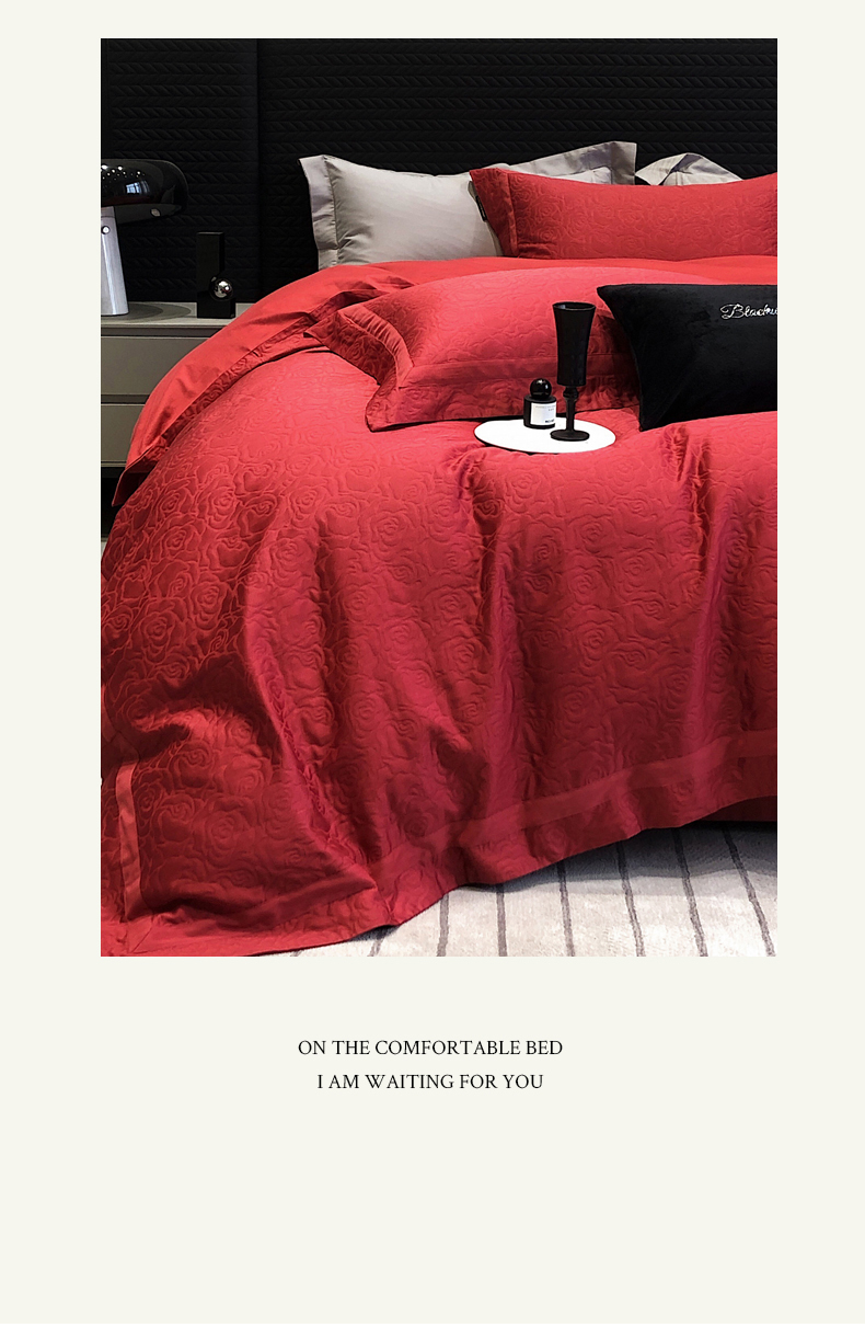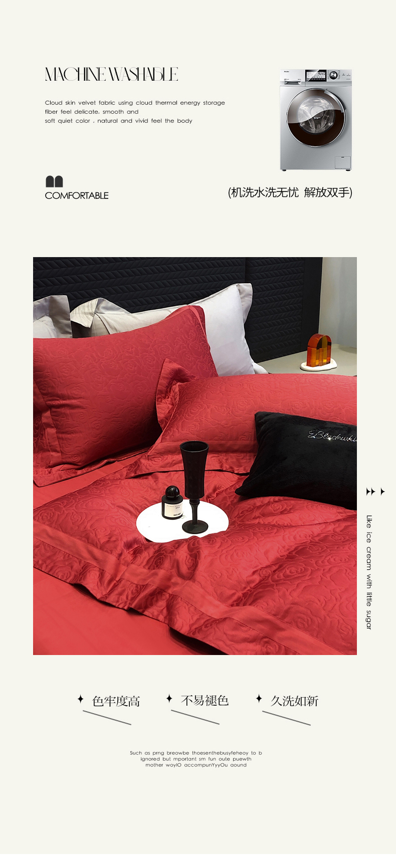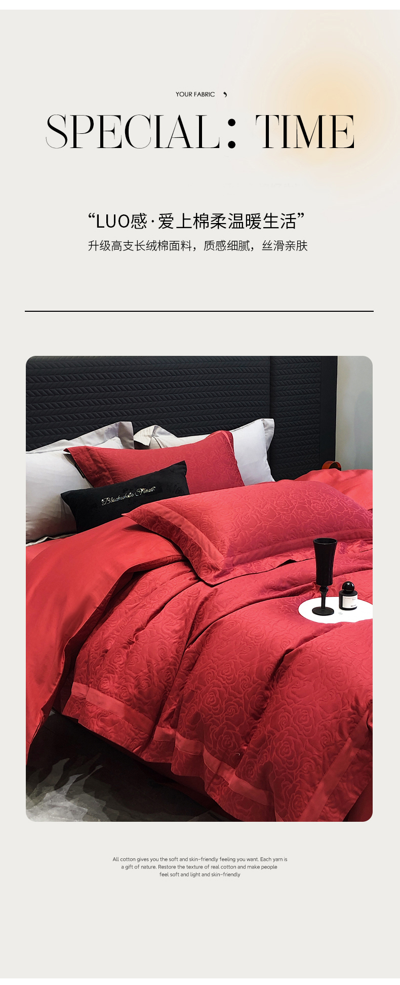 商品名称:黑白森林 2025新款高支全棉厚织磨毛提花四件套-花间集 花间集-云夕红