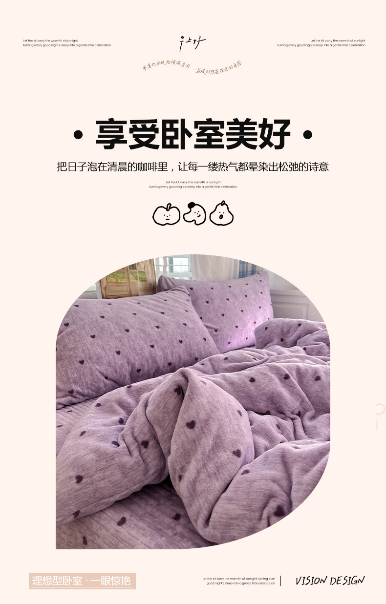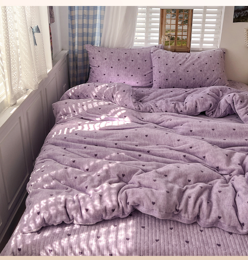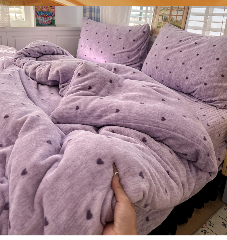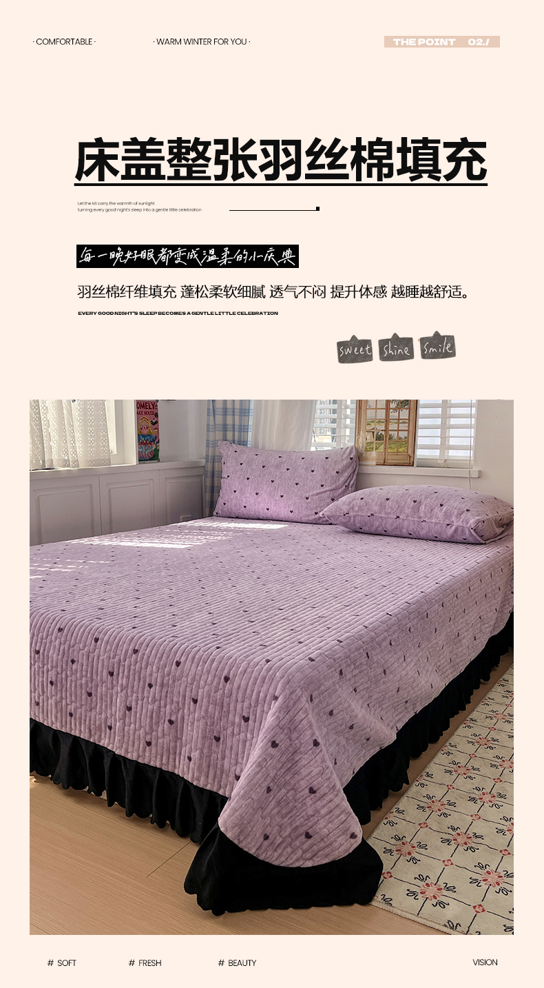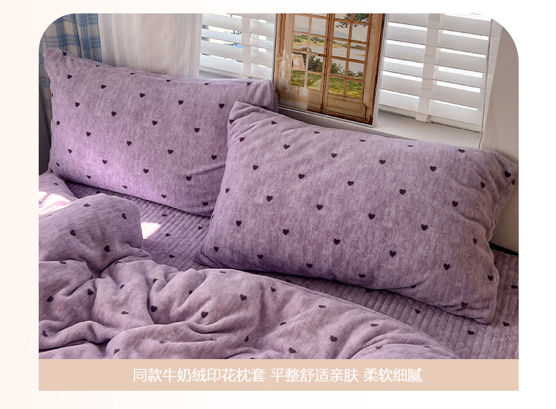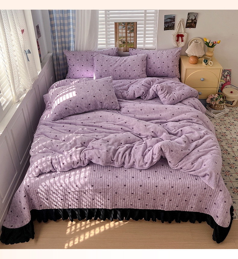 当前位置: 91家纺网 > 商品网购 > 床品套件 > 四件套 > 牛奶绒四件套 > 鑫利来家纺 2025新款牛奶绒加厚印花法式赫本风花边床盖四件套 床盖款-紫色小心心