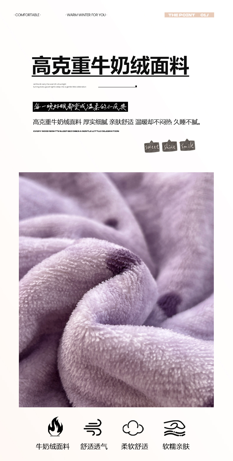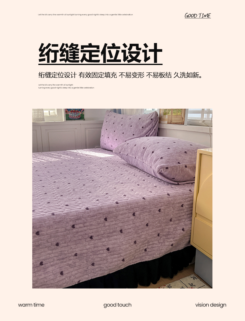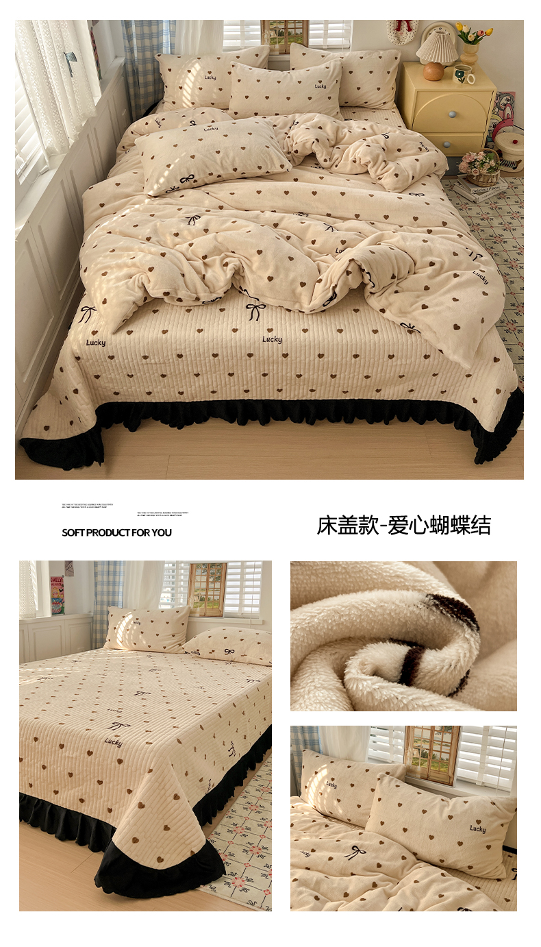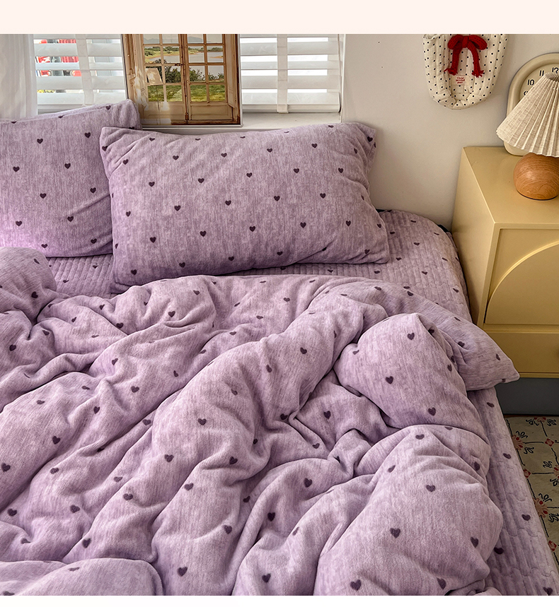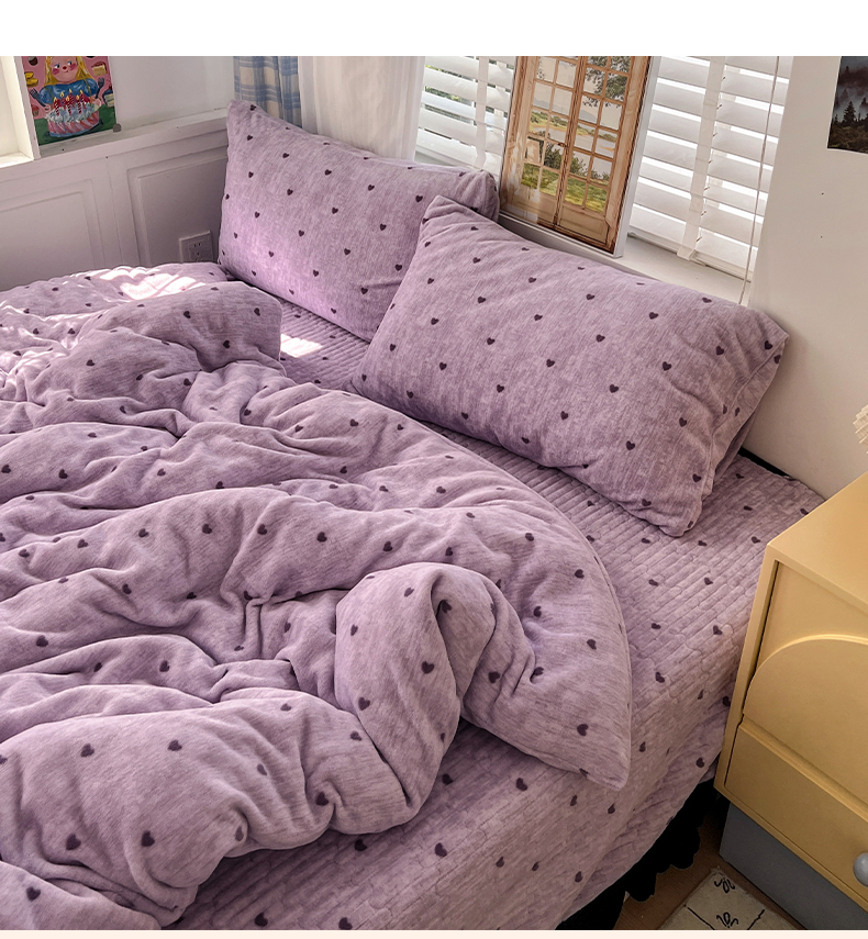 当前位置: 91家纺网 > 商品网购 > 床品套件 > 四件套 > 牛奶绒四件套 > 鑫利来家纺 2025新款牛奶绒加厚印花法式赫本风花边床盖四件套 床盖款-紫色小心心