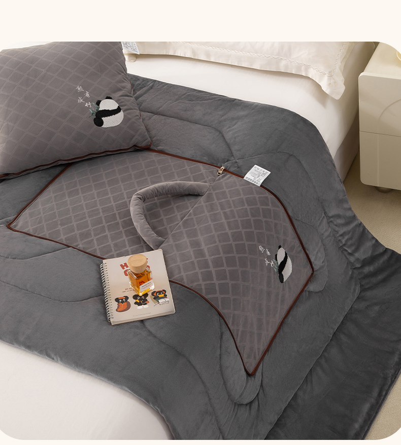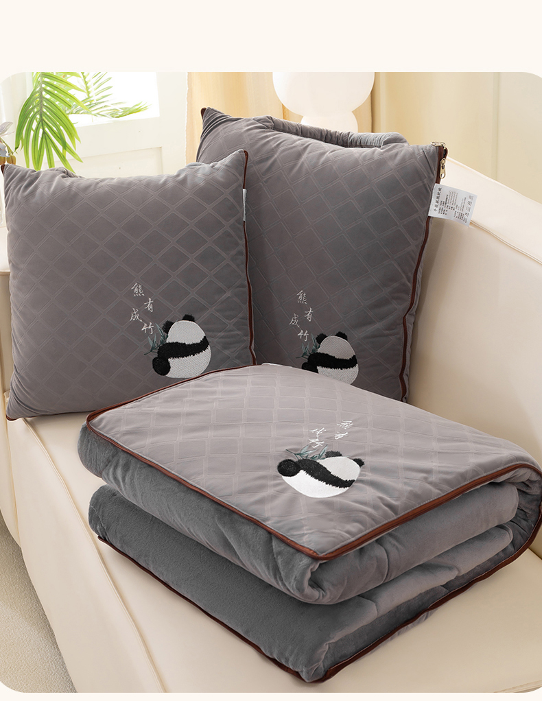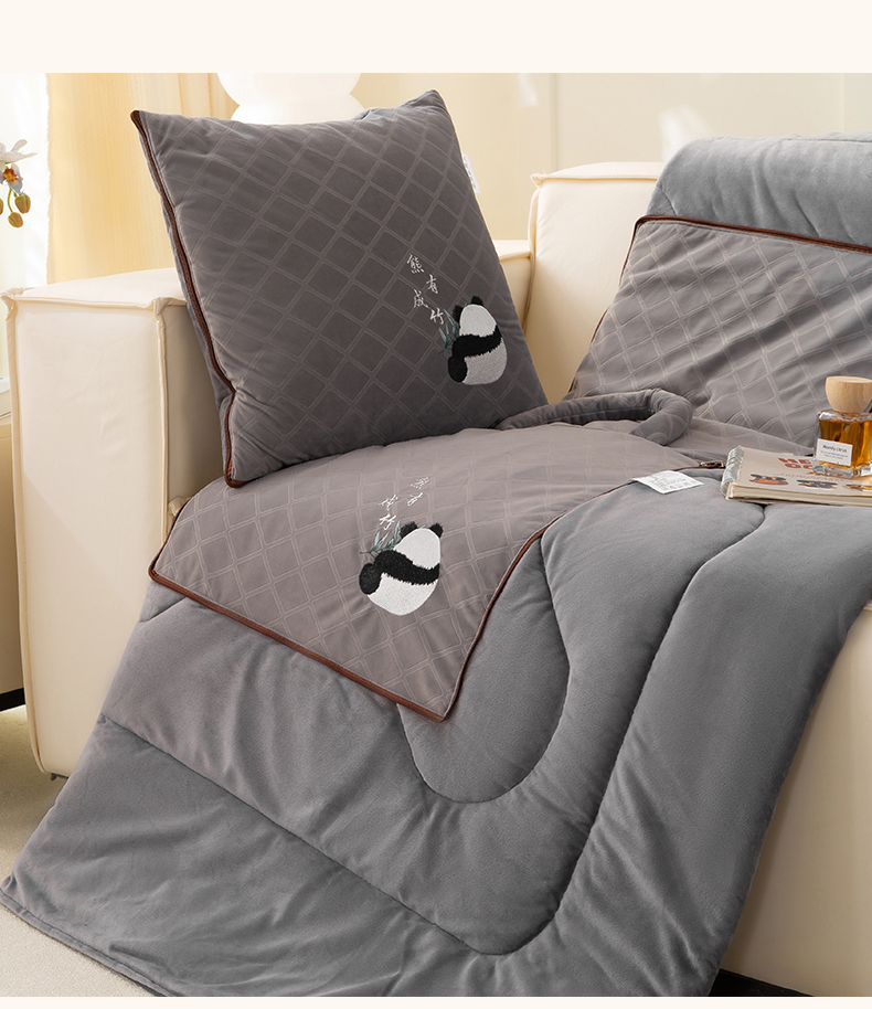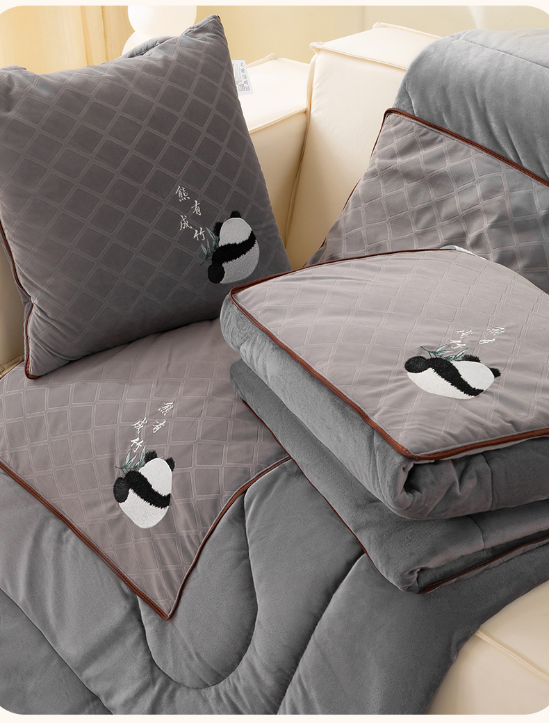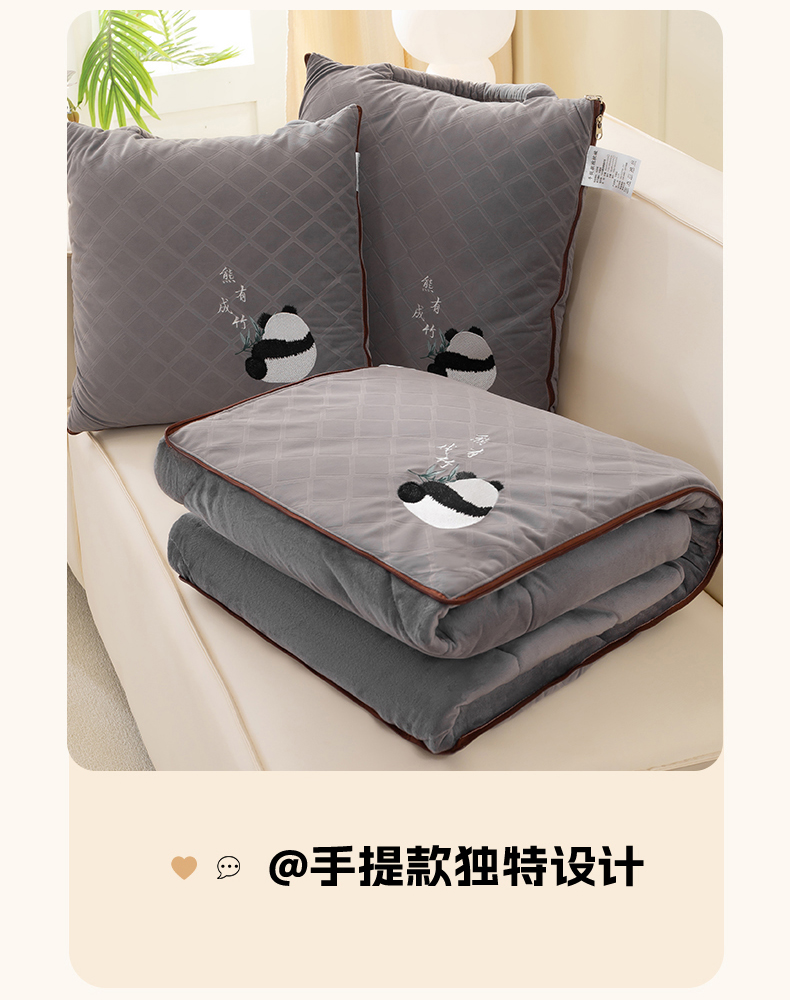 商品名称:多今家纺 2025新款便携手提式水晶绒玛莎绒刺绣抱枕被子-熊有成竹系列 熊有成竹-石岩灰