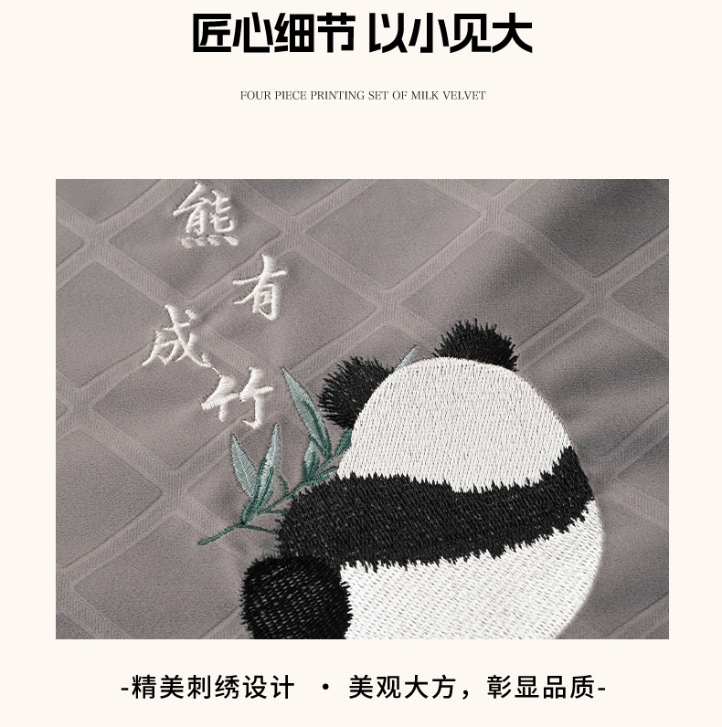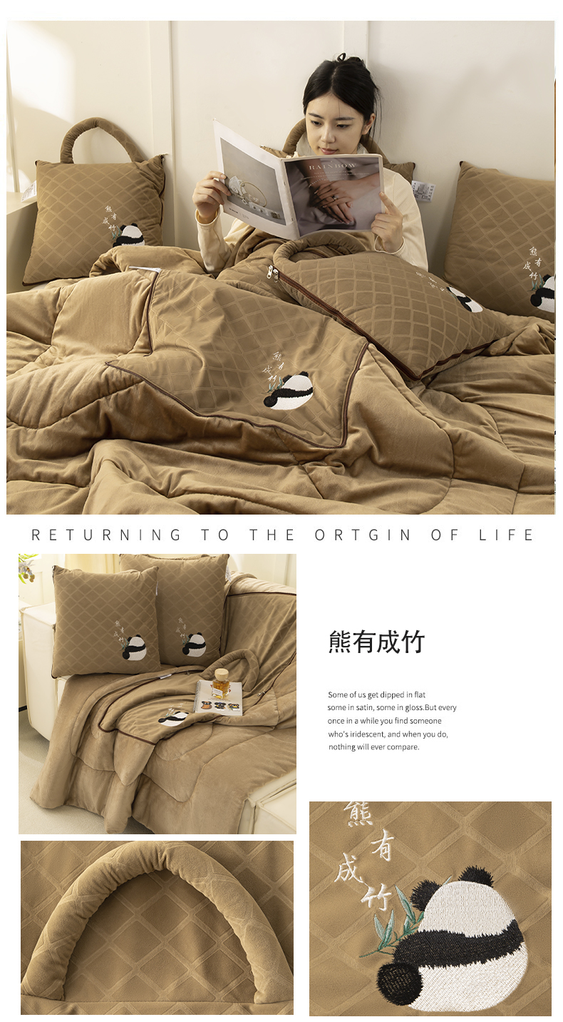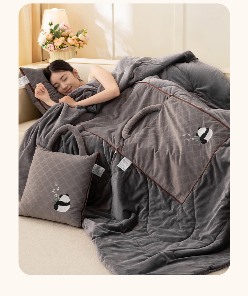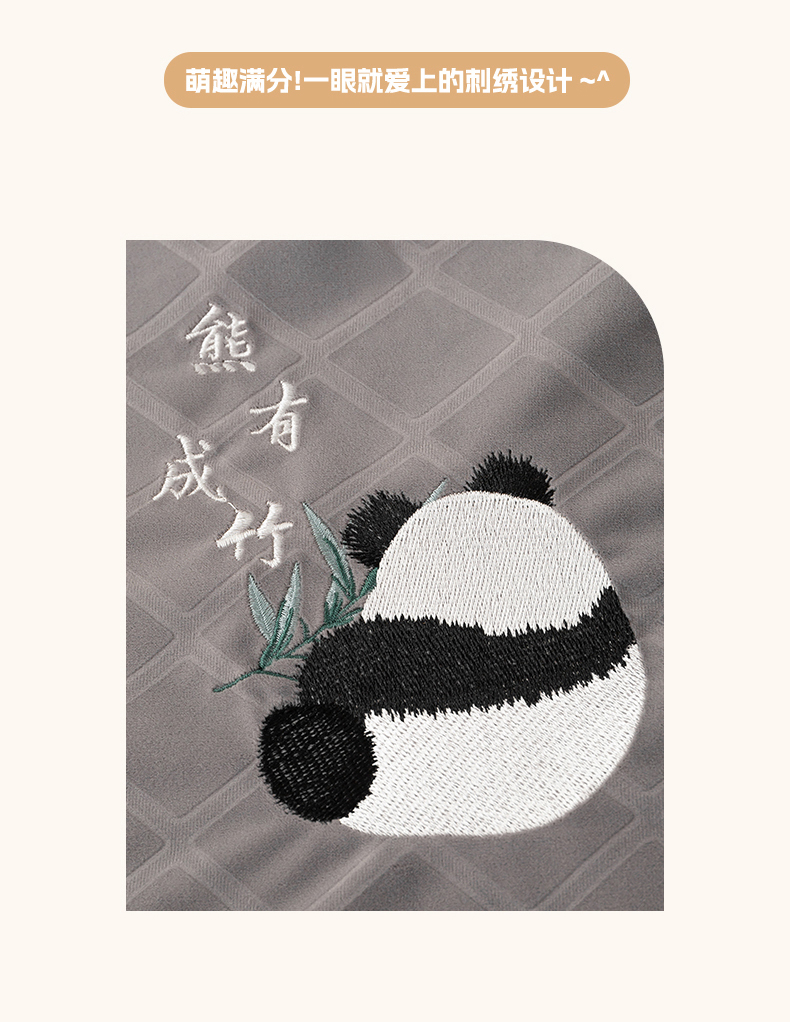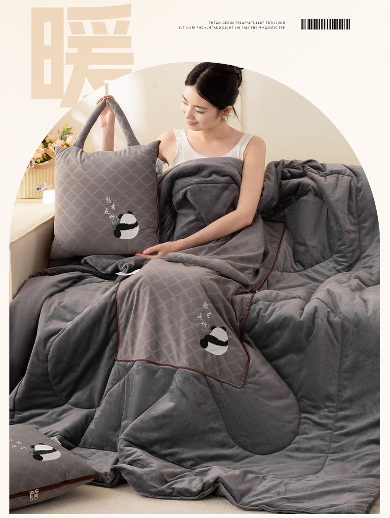 商品名称:多今家纺 2025新款便携手提式水晶绒玛莎绒刺绣抱枕被子-熊有成竹系列 熊有成竹-石岩灰