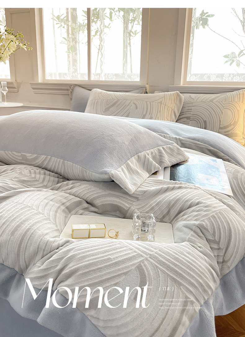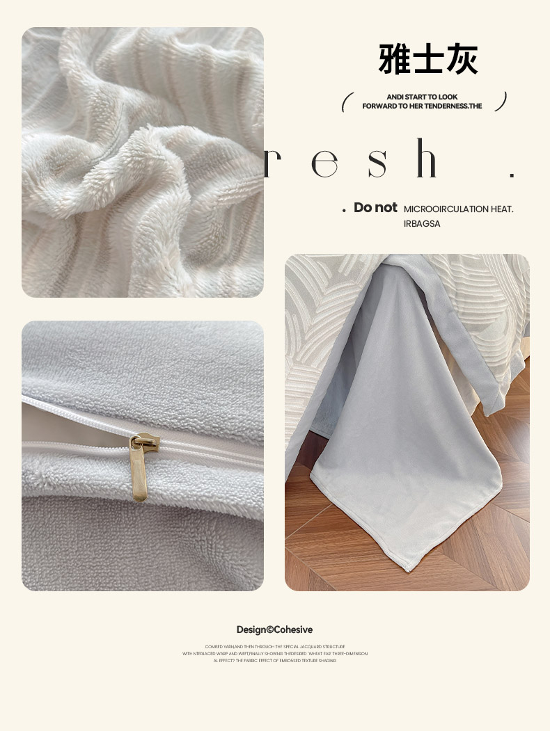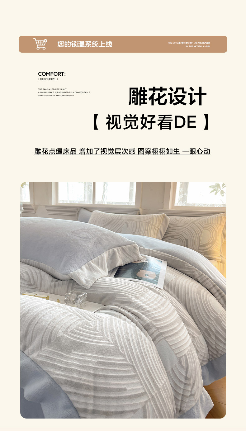 商品名称: 2025冬季热款A类加厚雕花牛奶绒四件套双面保暖刺绣被套珊瑚绒床单床上用品 阿芙拉-雅士灰