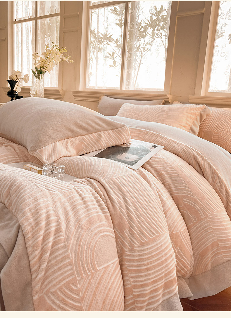 2025冬季热款A类加厚雕花牛奶绒四件套双面保暖刺绣被套珊瑚绒床单床上用品 阿芙拉-雅士灰