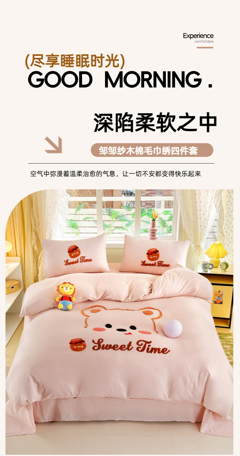 当前位置: 91家纺网 > 商品网购 > 床品套件 > 四件套 > 毛巾绣四件套 > 恋之语 2025新款皱皱纱毛巾绣四件套及单被套系列-俏皮熊 俏皮熊-黄色