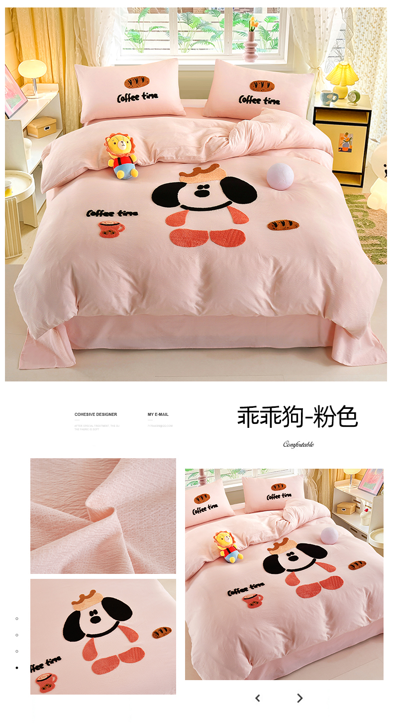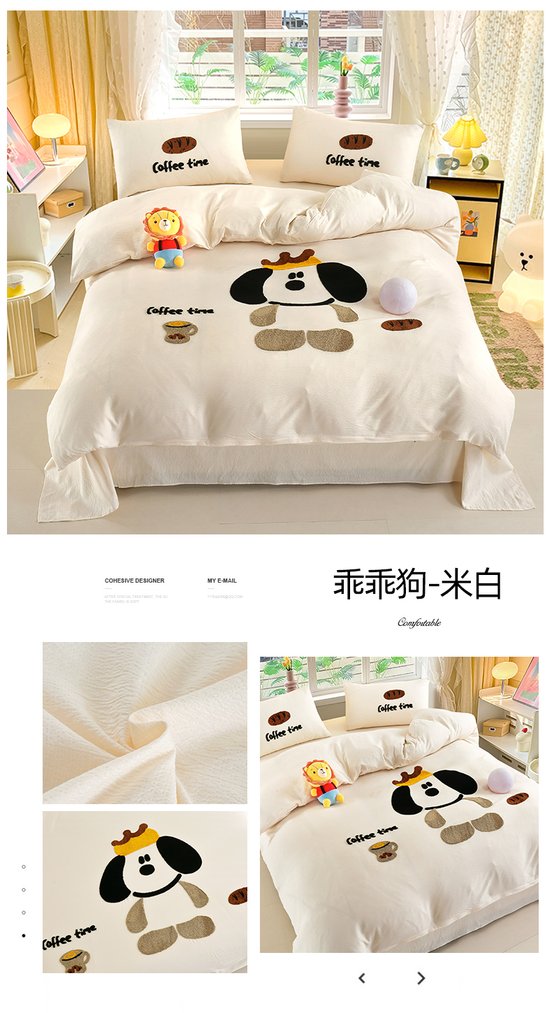 商品名称:(总)恋之语 2025新款皱皱纱木棉毛巾绣四件套及单被套系列-乖乖狗