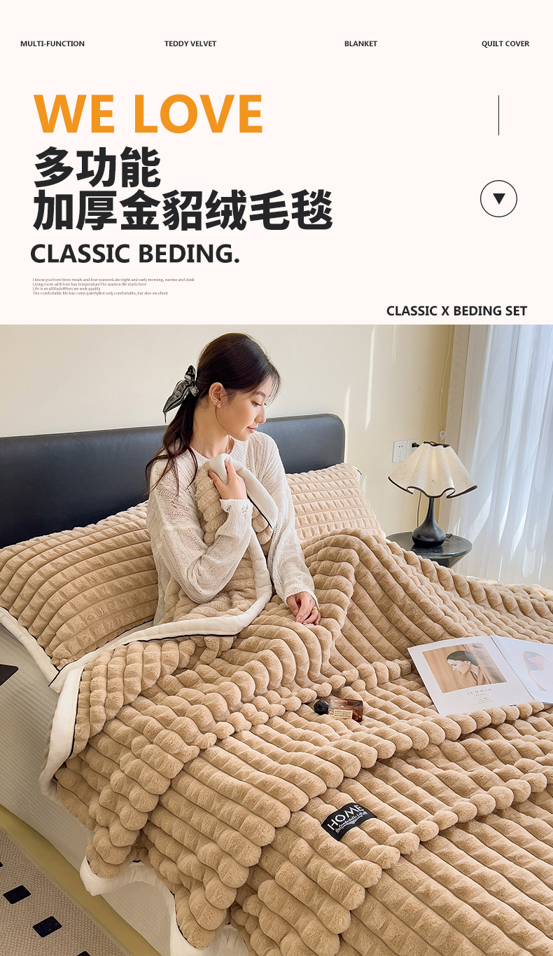 叠派家纺 2025新款毛毯A类金貂绒毛毯剪格多功能毛毯盖毯毛毯(可供跨境外贸抽空热款首选) 金貂绒-奶油白