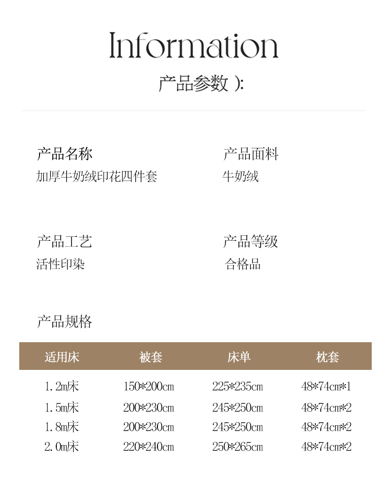 商品名称:思诺羽床笠 2025新款加厚牛奶绒印花四件套 彩韵