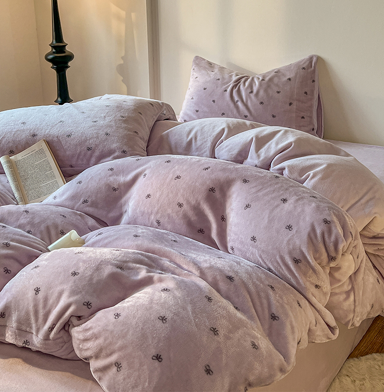 (总)思诺羽床笠 2025新款加厚牛奶绒印花四件套,彩韵,格棕,绒点,绒格蝶梦,樱语,紫爱心,紫蝶,紫花绒梦,紫韵