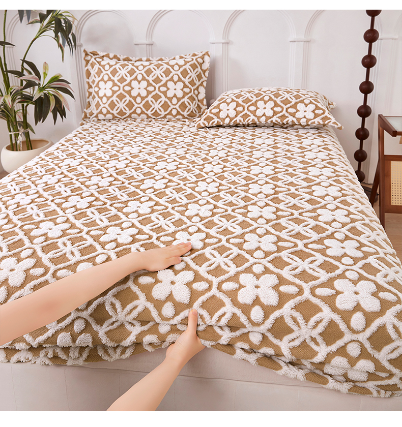 云玲时尚 2025新款阳离子塔芙绒床笠 山茶卡其