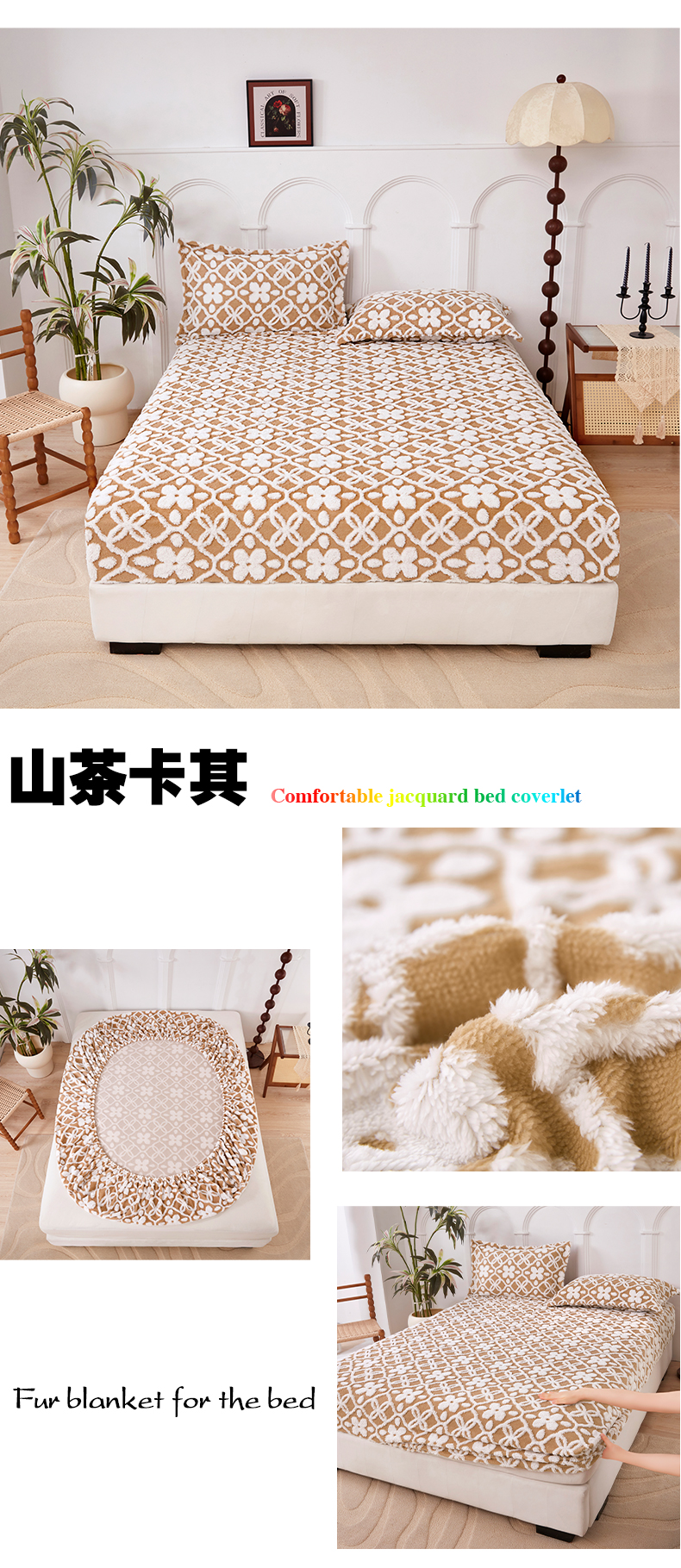 商品名称:云玲时尚 2025新款阳离子塔芙绒床笠 山茶卡其