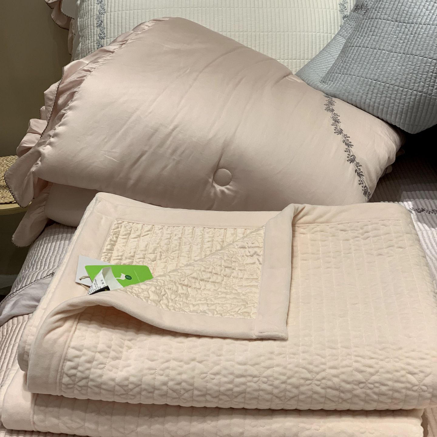 (总)汇庭 2025秋冬新·花边款单双人豆豆被系列,炊烟,萌芽,组合图仅供参考,桃花溪,山海绿,山海蓝,莫尼卡,可可草莓,静香,海花岛