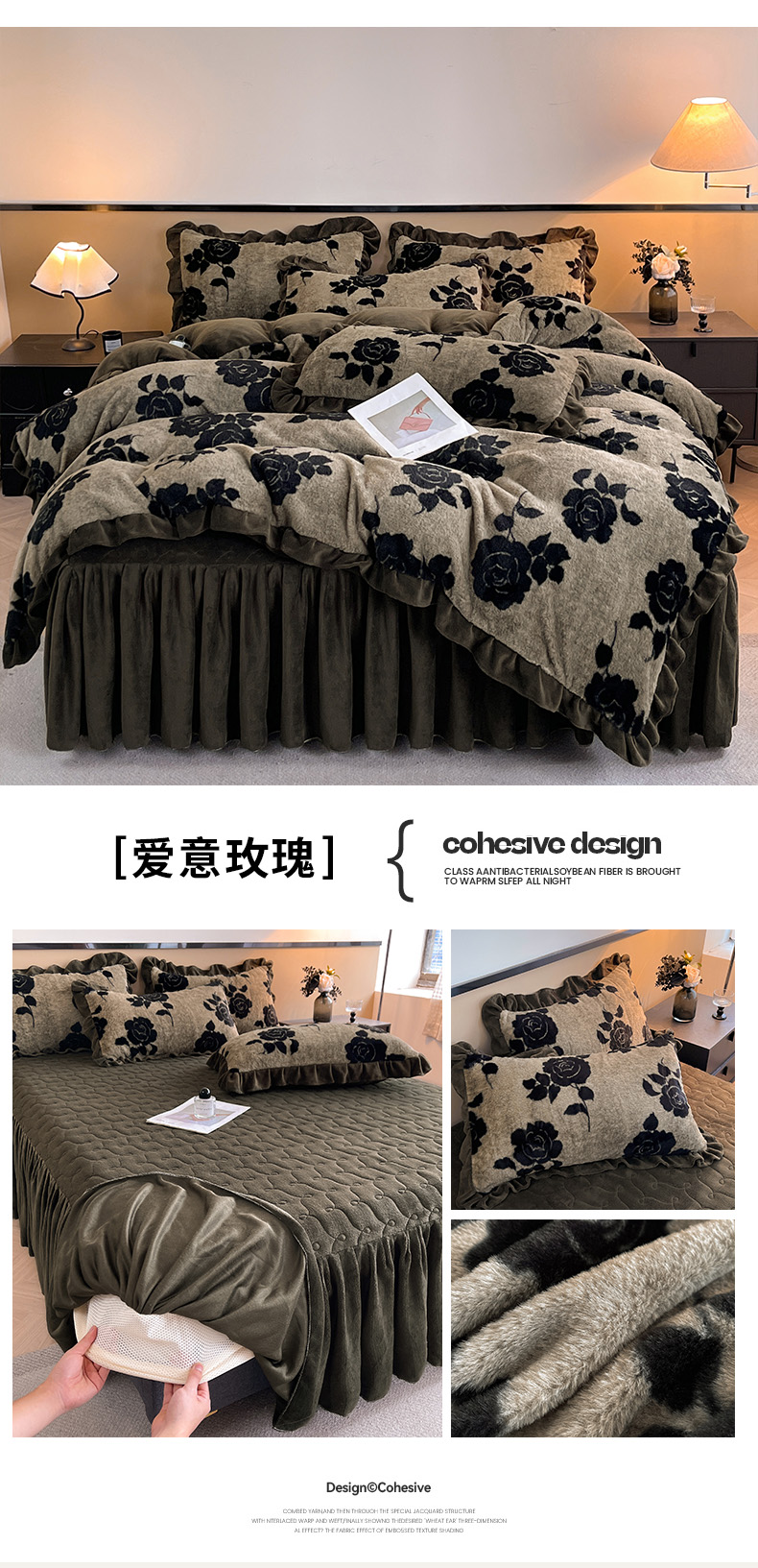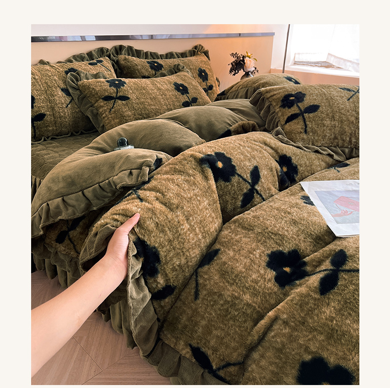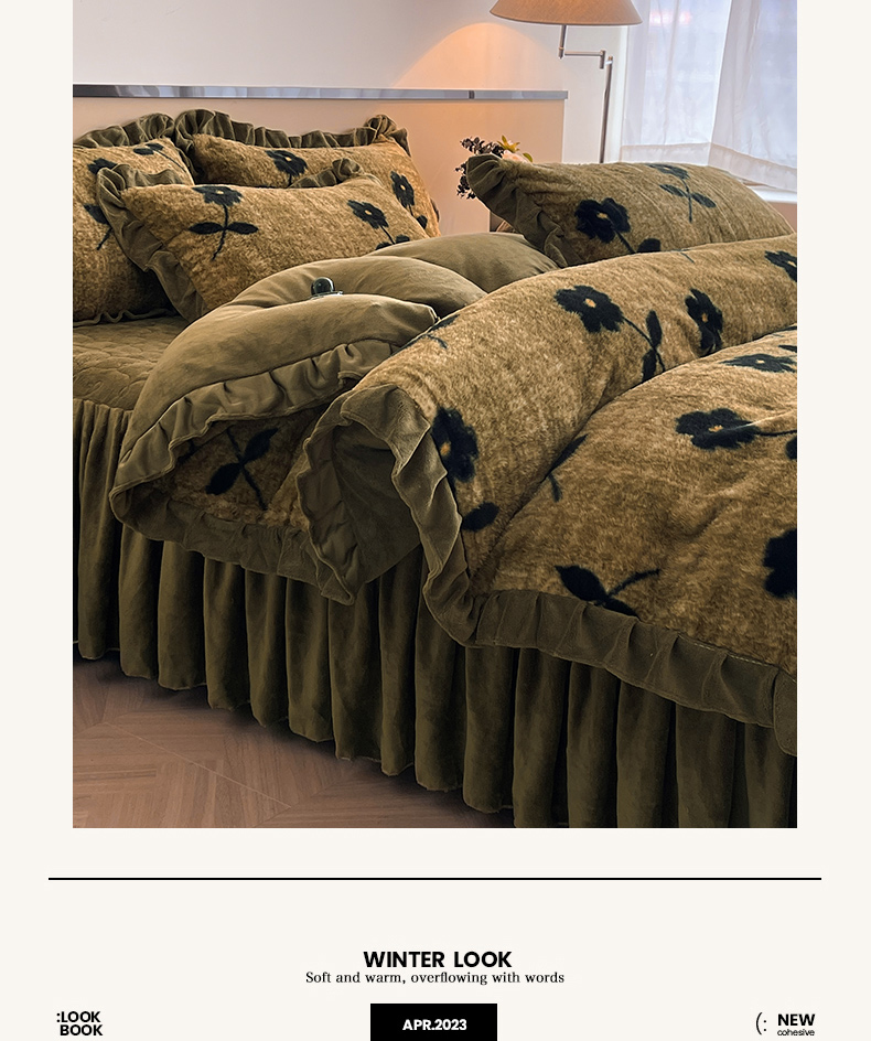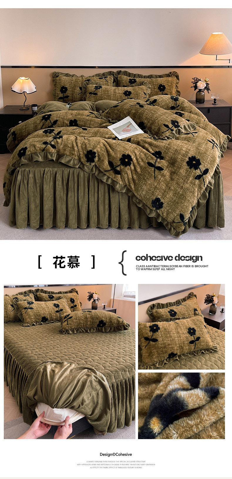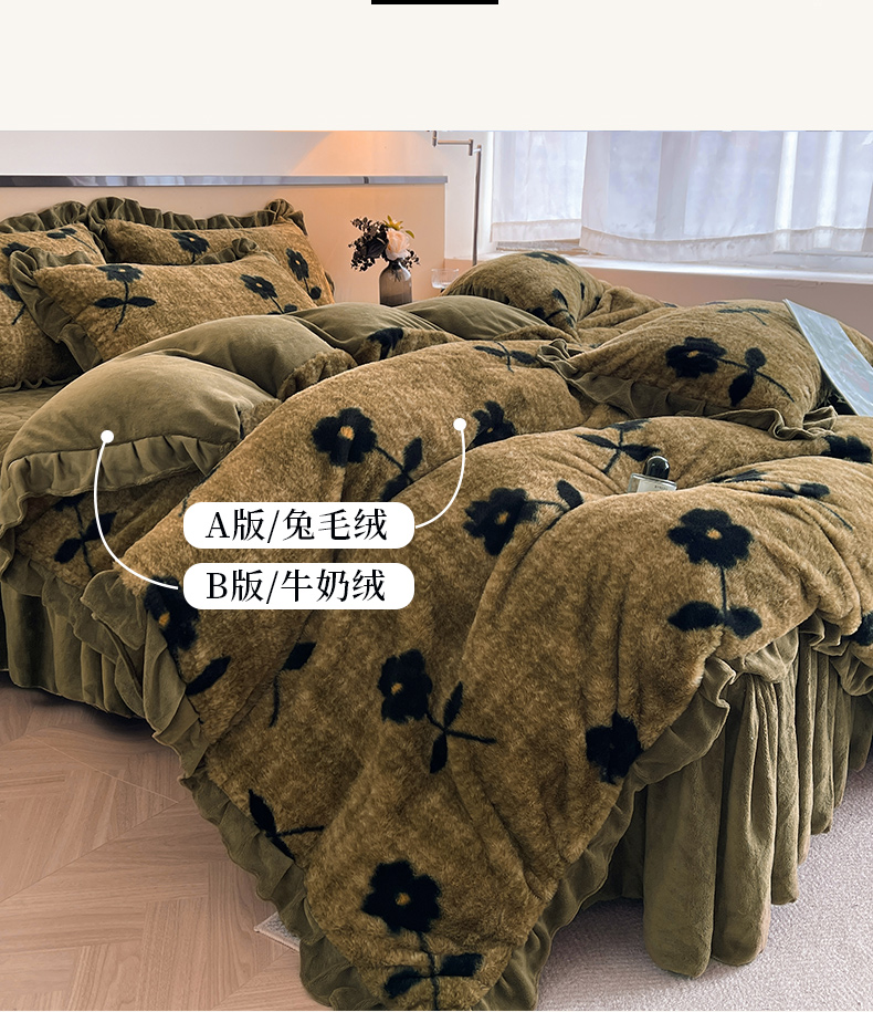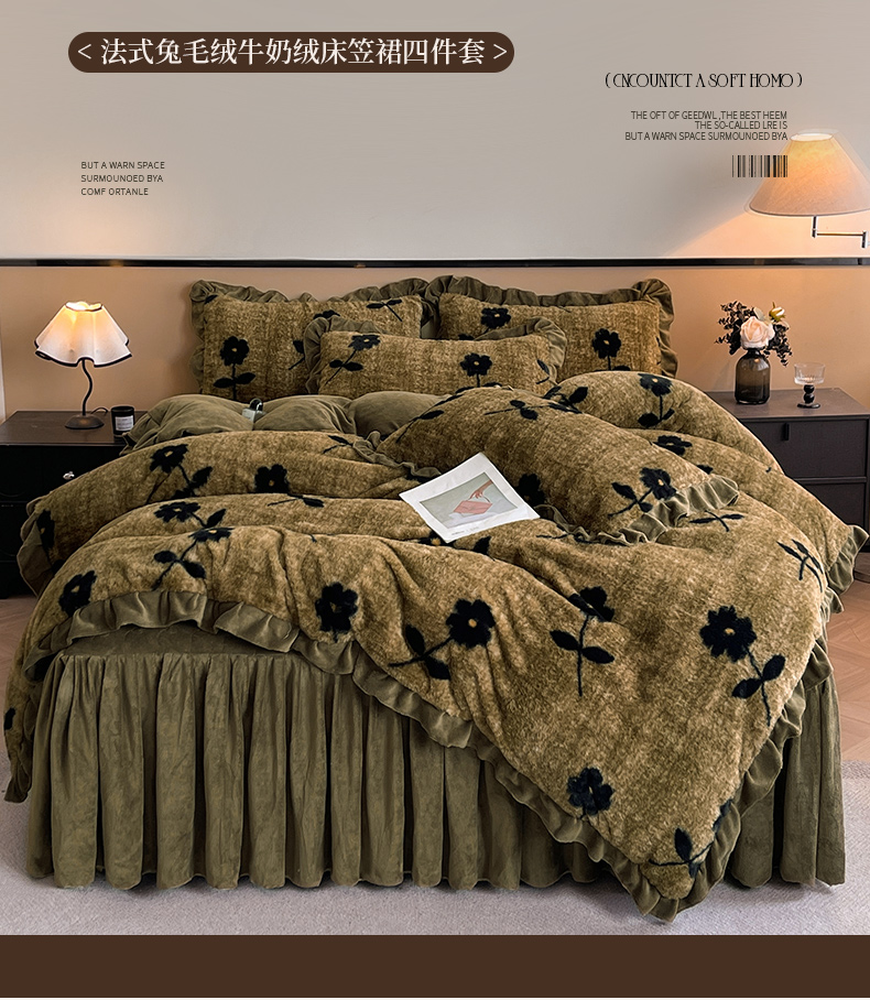 当前位置: 91家纺网 > 商品网购 > 床品套件 > 四件套 > 牛奶绒四件套 > 恋尚 2025新款懒兔毛绒夹棉牛奶绒床笠式床裙四件套(控价238元起) 花慕
