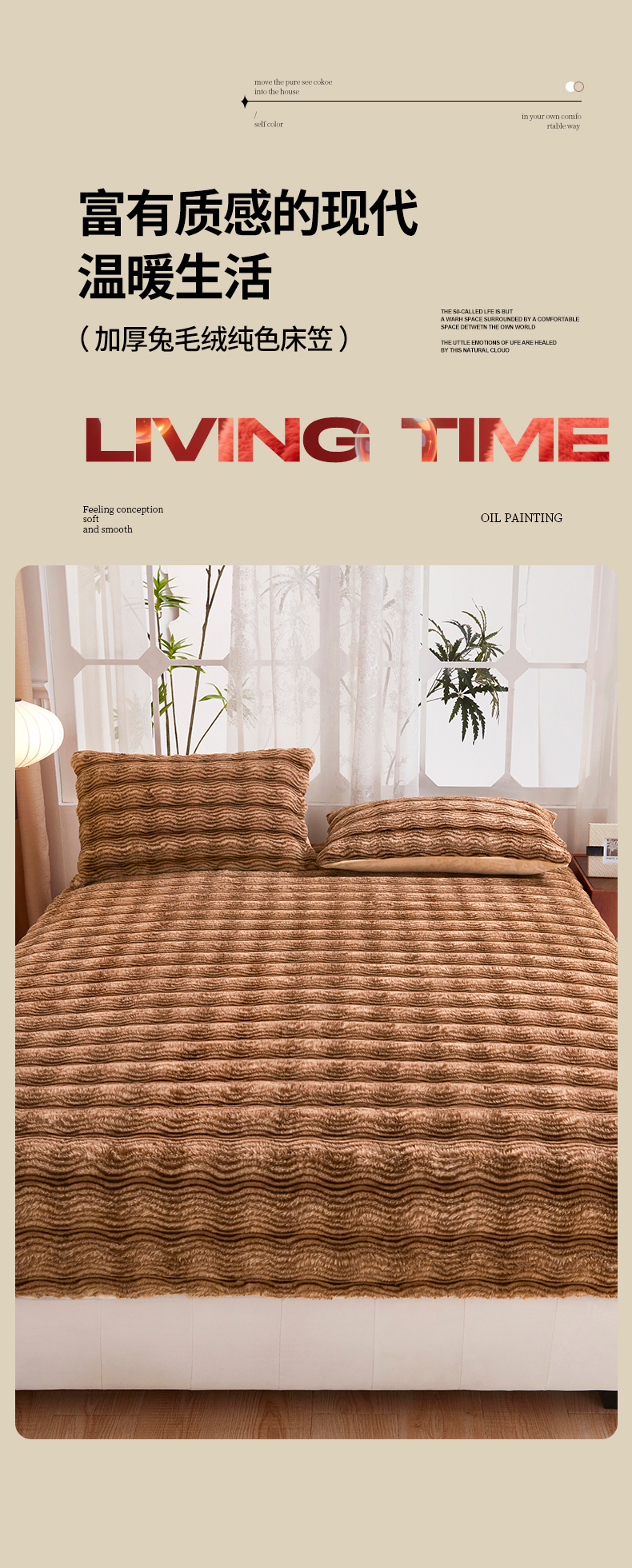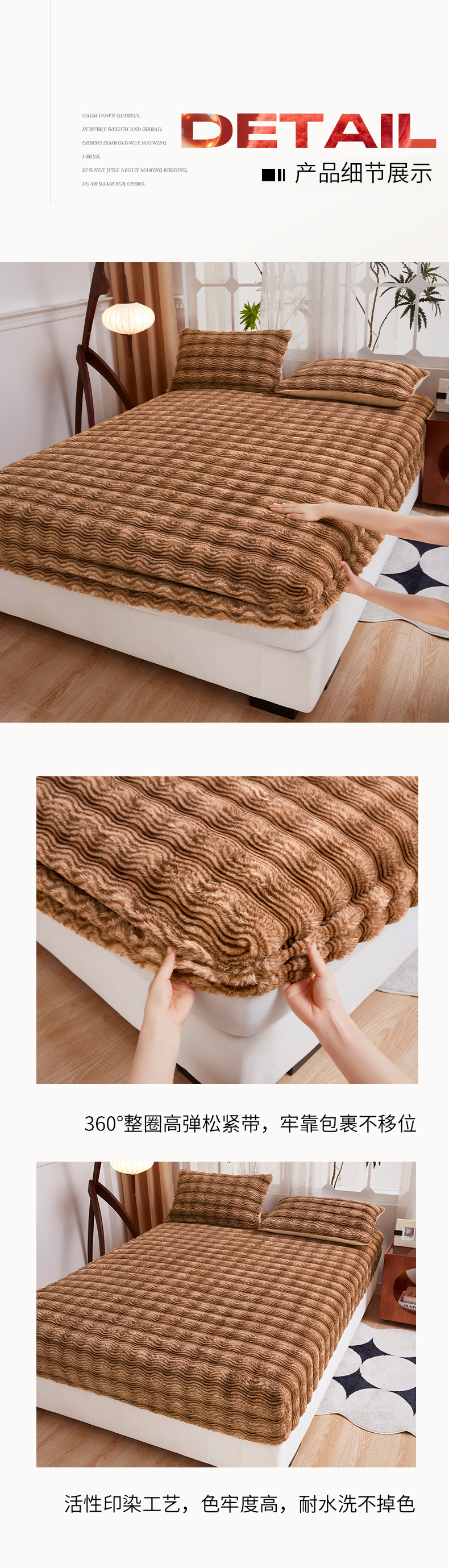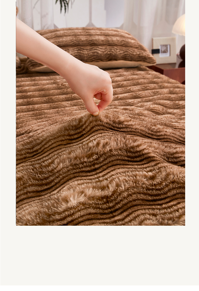 商品名称:乐居家纺 2025新款加厚兔毛绒纯色床笠系列 波纹-云雾咖