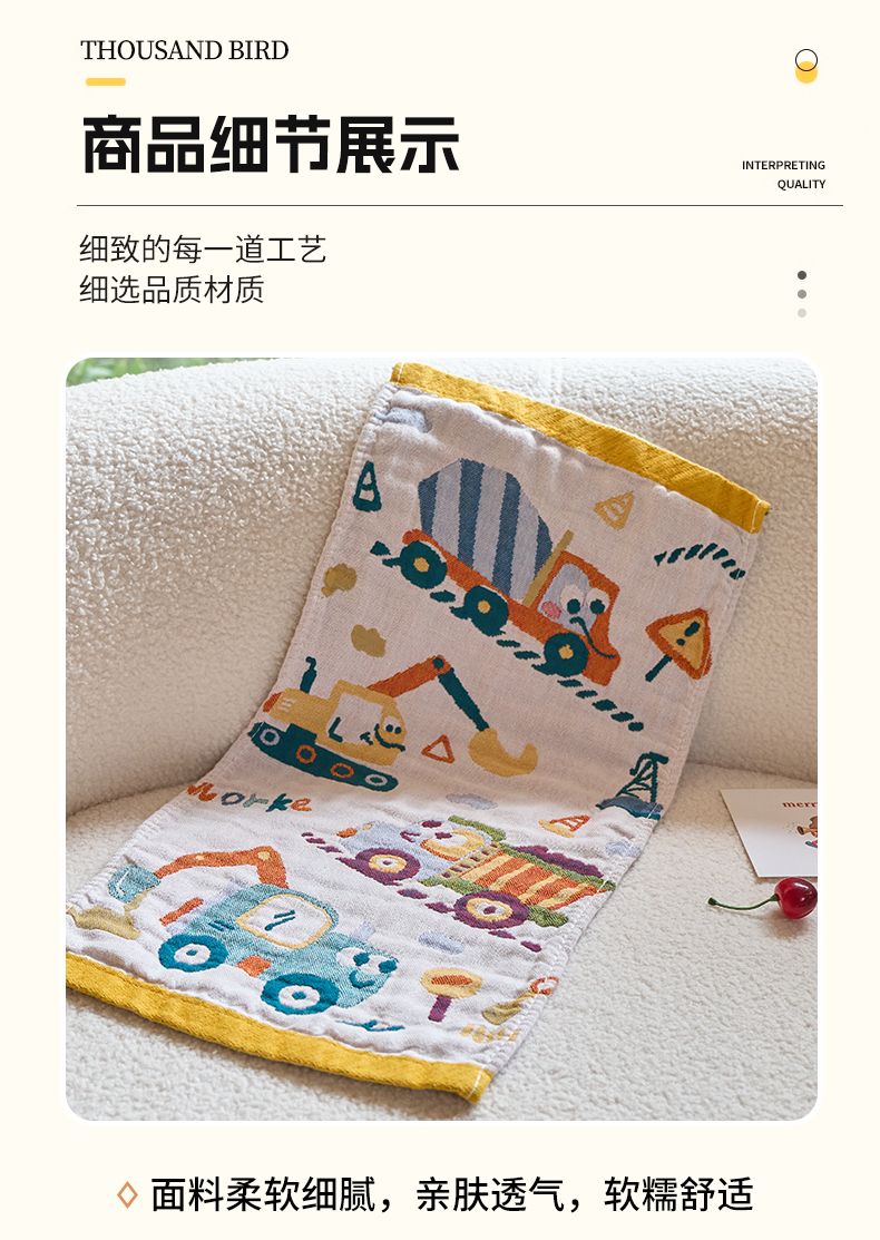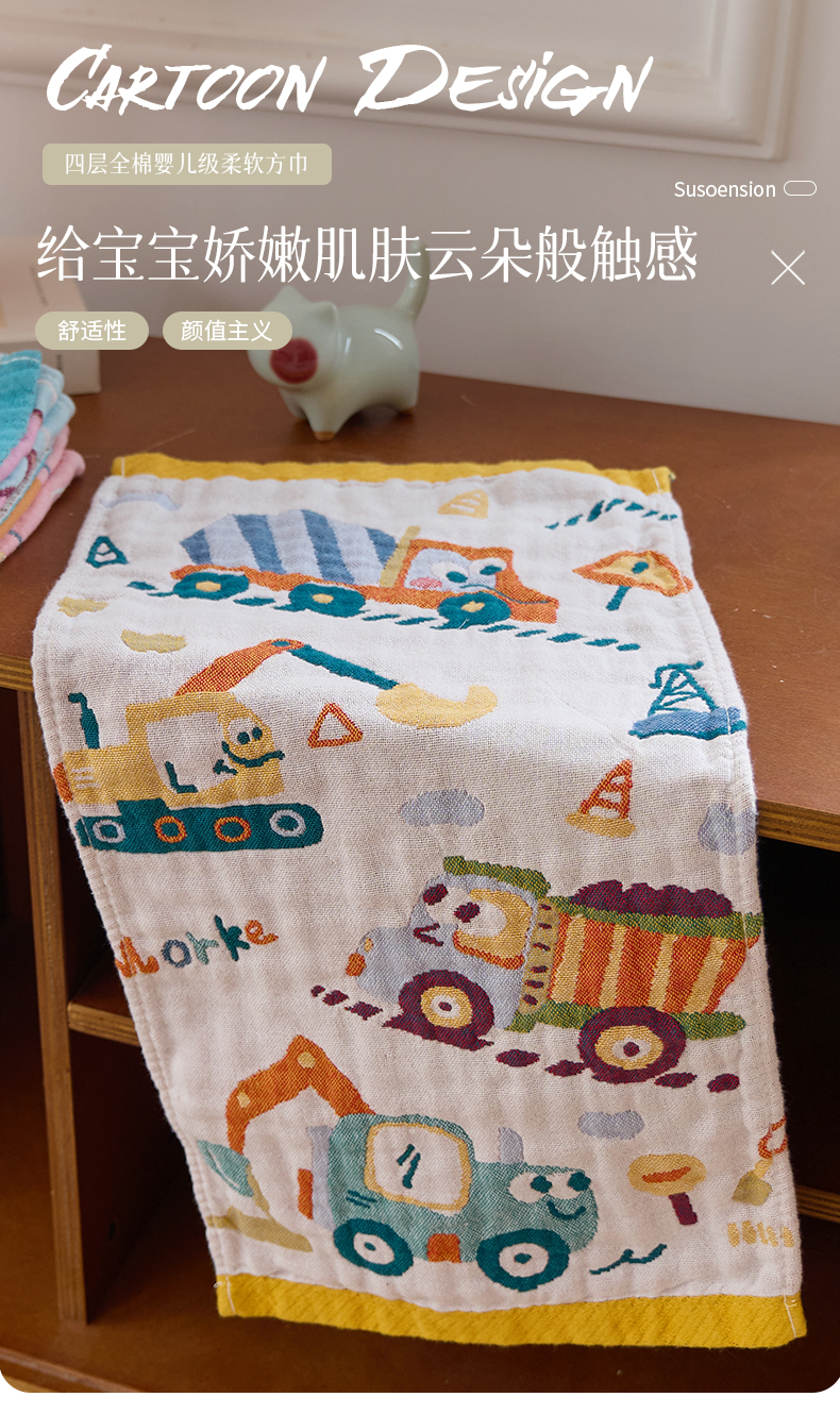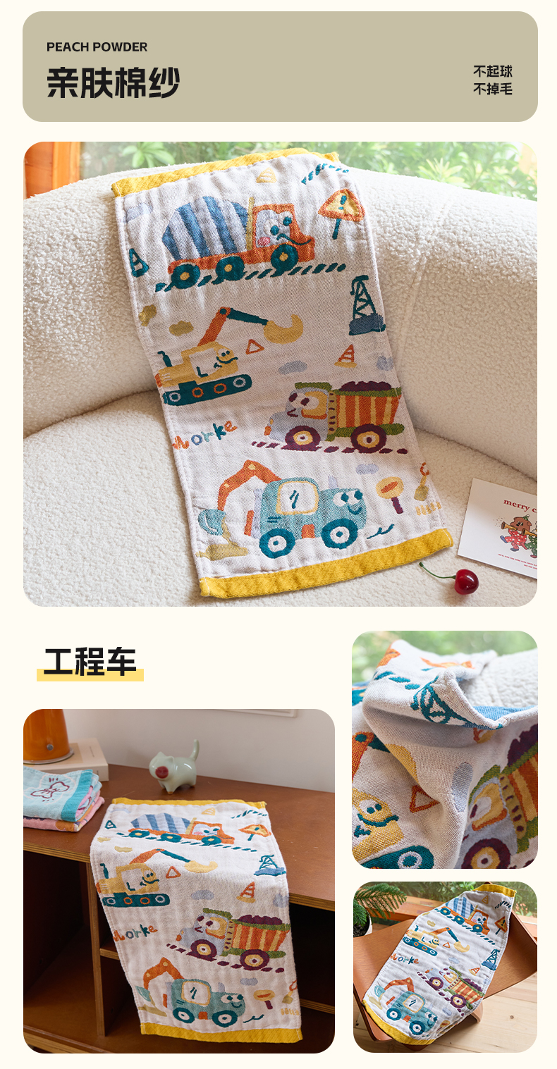 当前位置: 91家纺网 > 商品网购 > 居家日用 > 毛巾/浴巾/浴袍 > 毛巾 > 沐瑟家纺 2025新款全棉纱布儿童卡通小毛巾 工程车 25*50cm/条