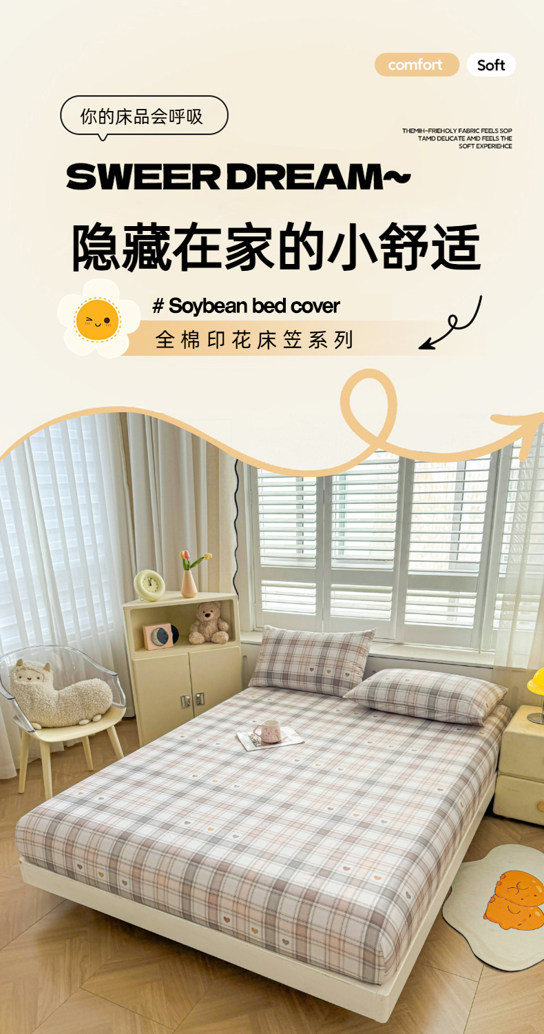 • 91家纺网 家纺一手货源 找家纺 名优家纺 2025新款12868全棉印花外贸床笠 拿铁米