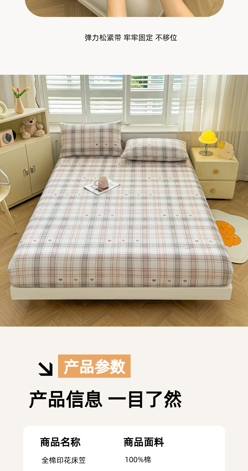 名优家纺 2025新款12868全棉印花外贸床笠 拿铁米