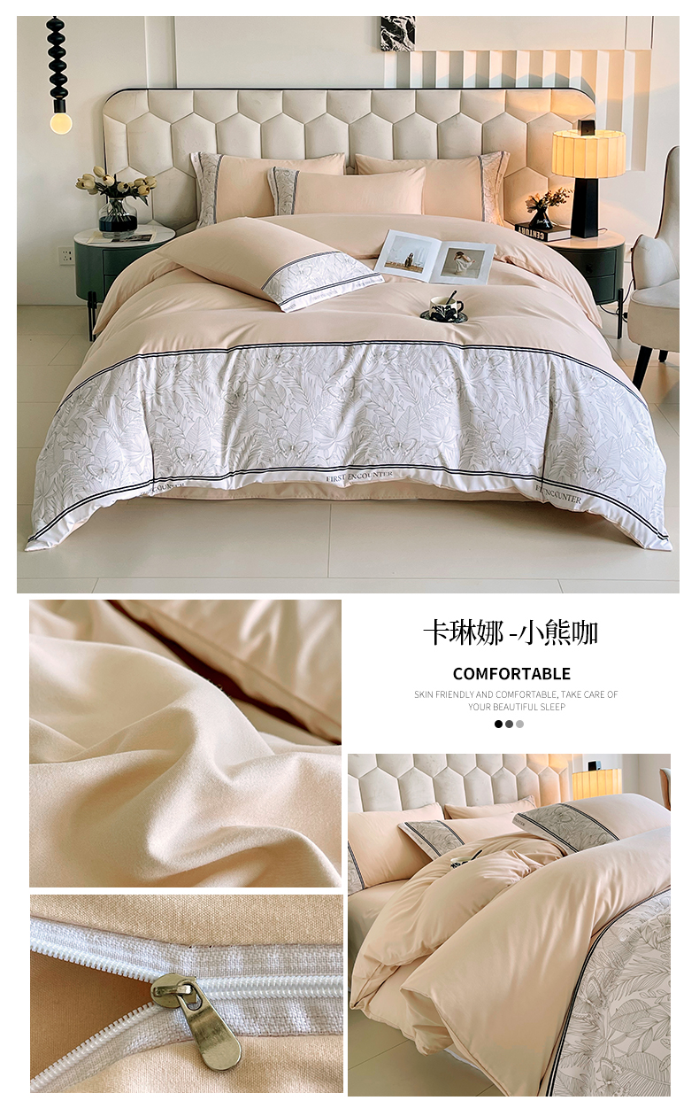 商品名称:(总)大麦乐田 2025新款法式轻奢碳素磨毛四件套-卡琳娜系列