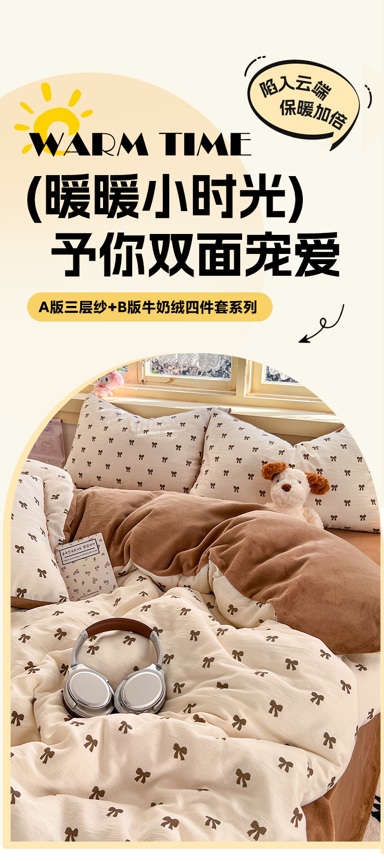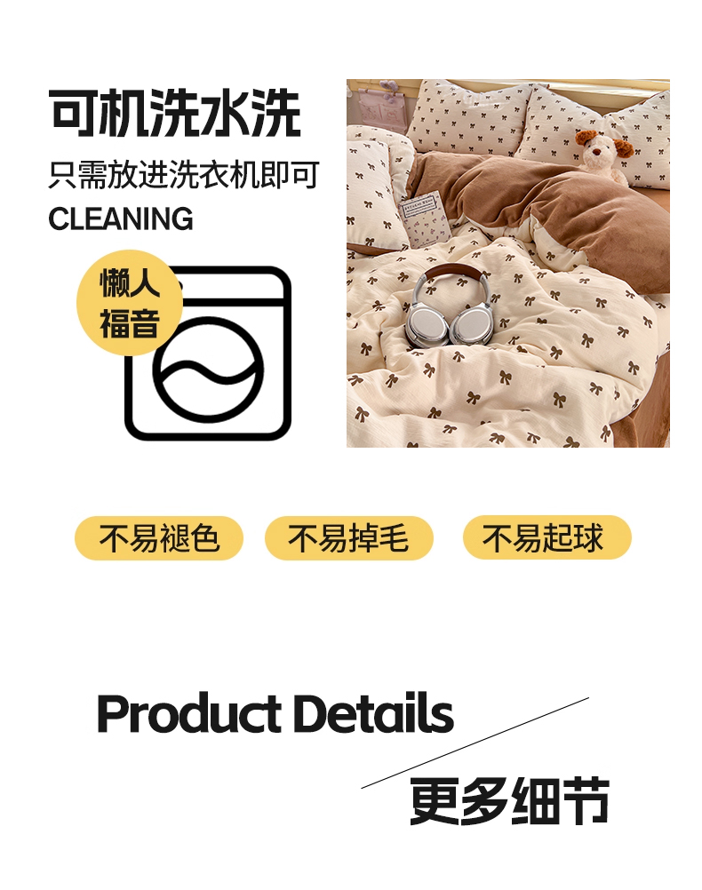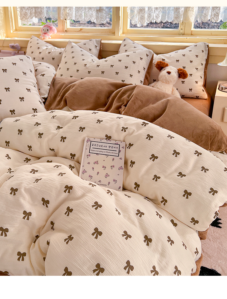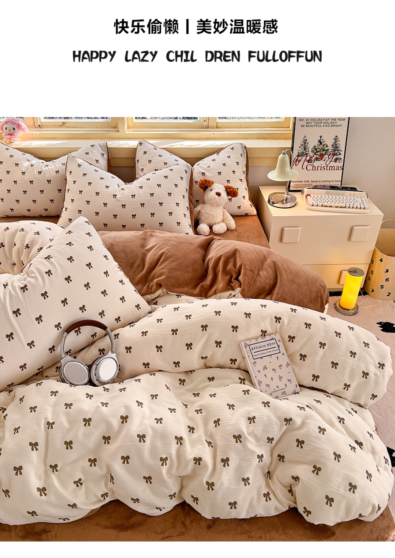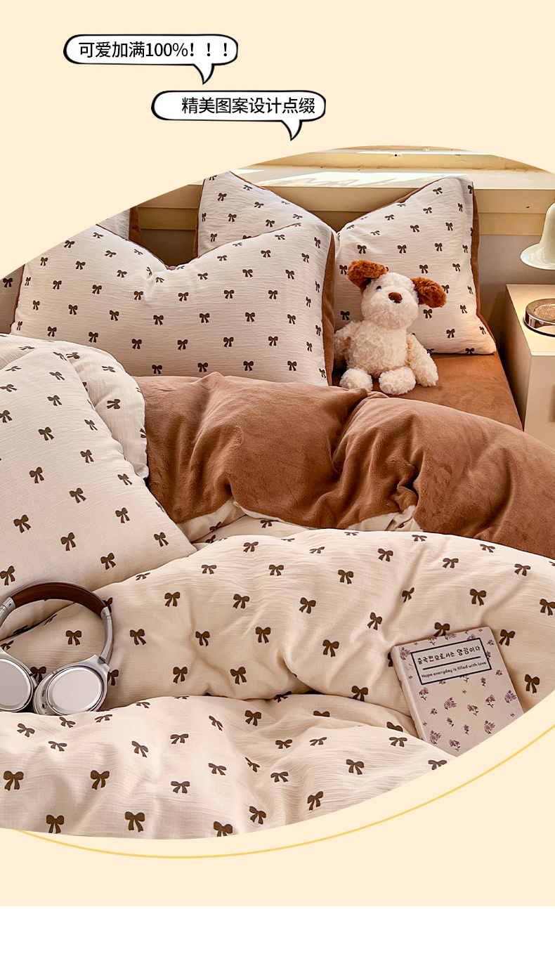 商品名称:瑞钰 2025新款A版三层纱B版牛奶绒四件套系列 碱水结