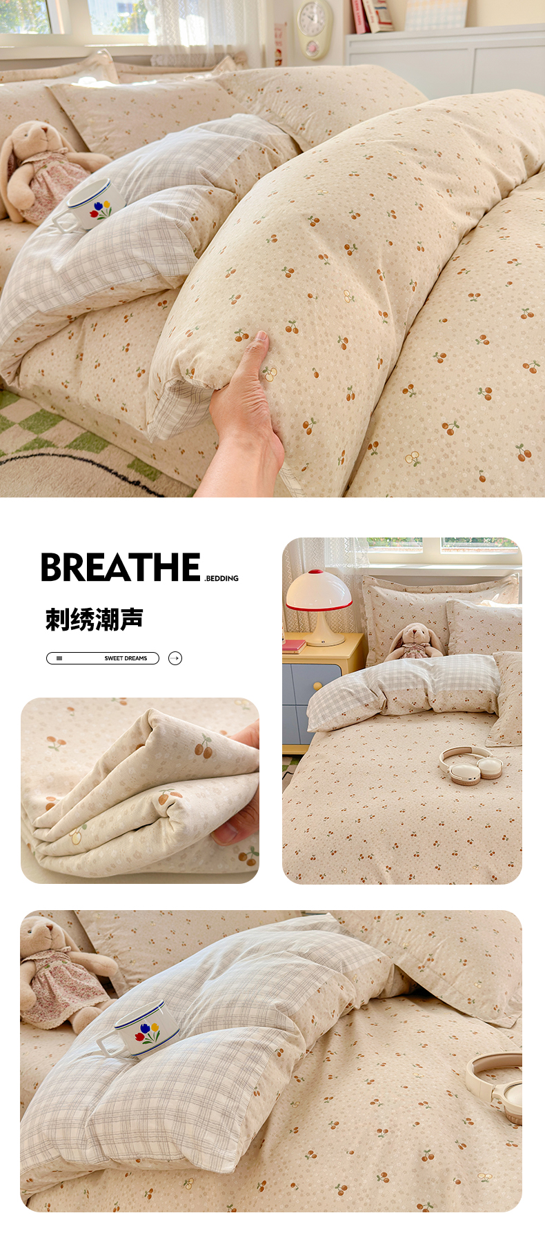 当前位置: 91家纺网 > 商品网购 > 床上用品 > 被套 > 拾物记 2026新款第一批12868A类全棉单品被套系列(预留7-9厘米的缩水尺寸,加厚金属双拉链头、暗线四面锁边,四角全棉绑带) 草莓小狗