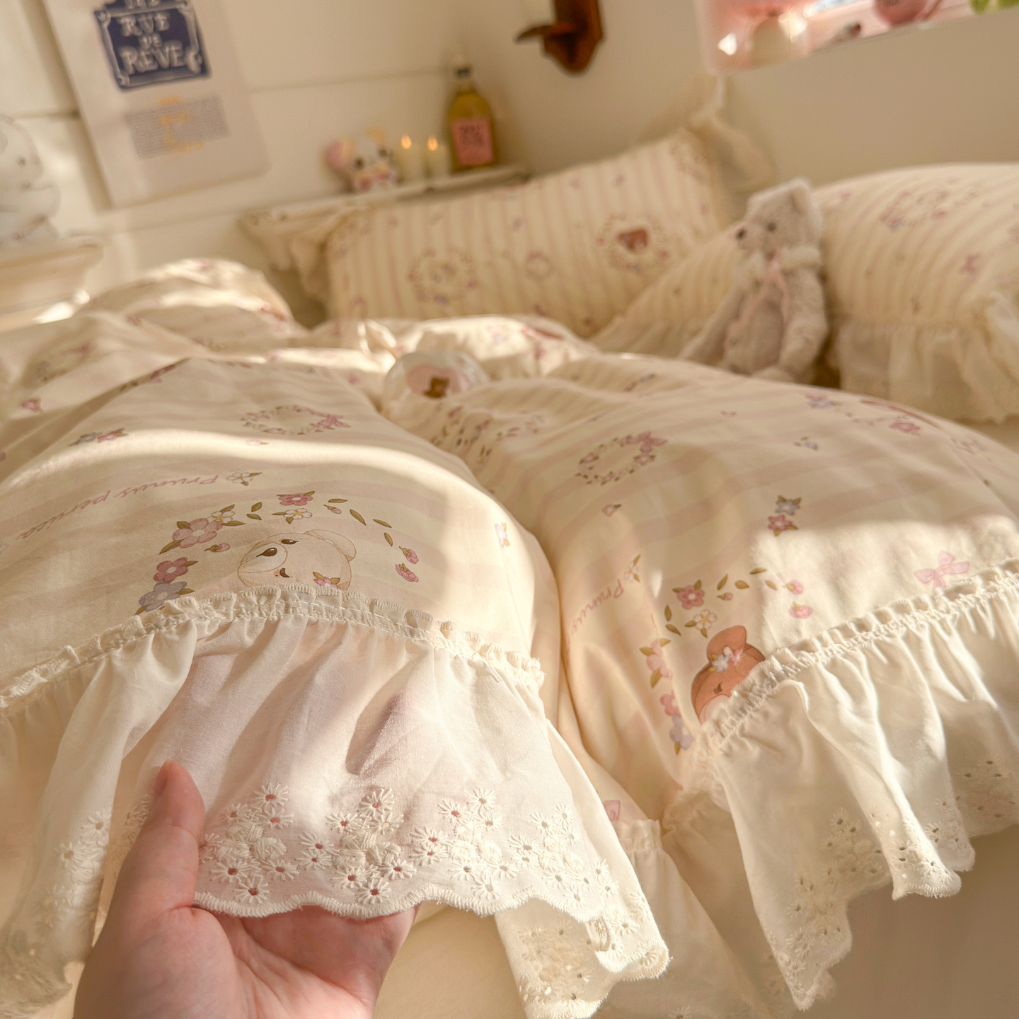 (总)锦彩家居 2026新款A类全棉纯棉韩式花边款小清新双层纱四件套-半糖主义系列 (提供买家秀),焦糖摩卡,梦幻蝶舞,奶油樱桃,软萌小兔,淘气泡泡