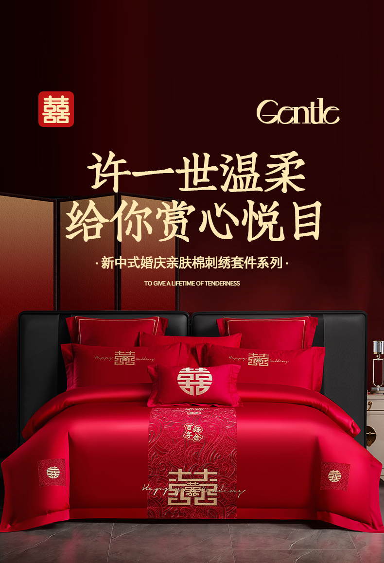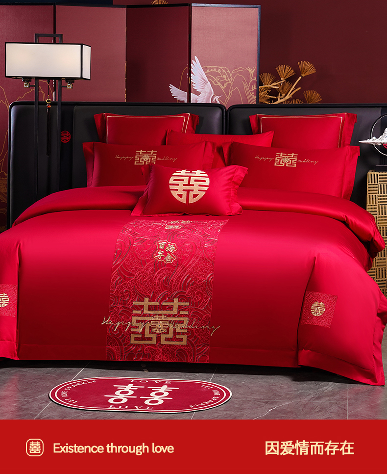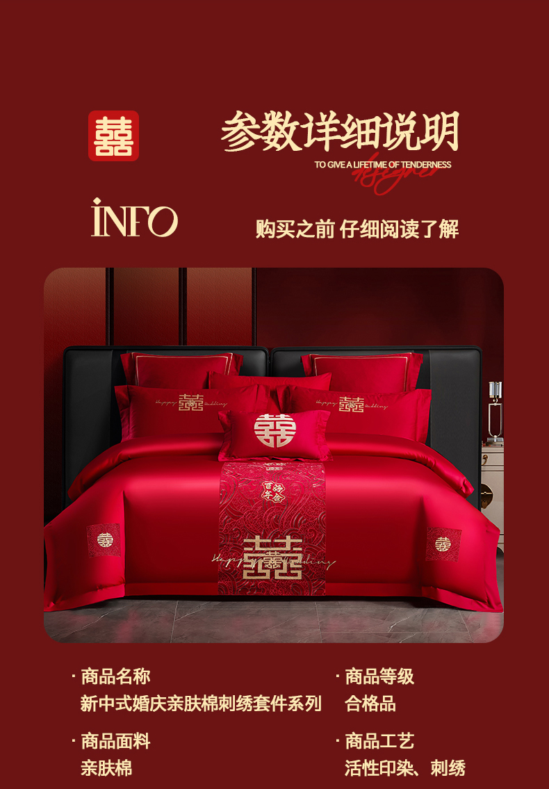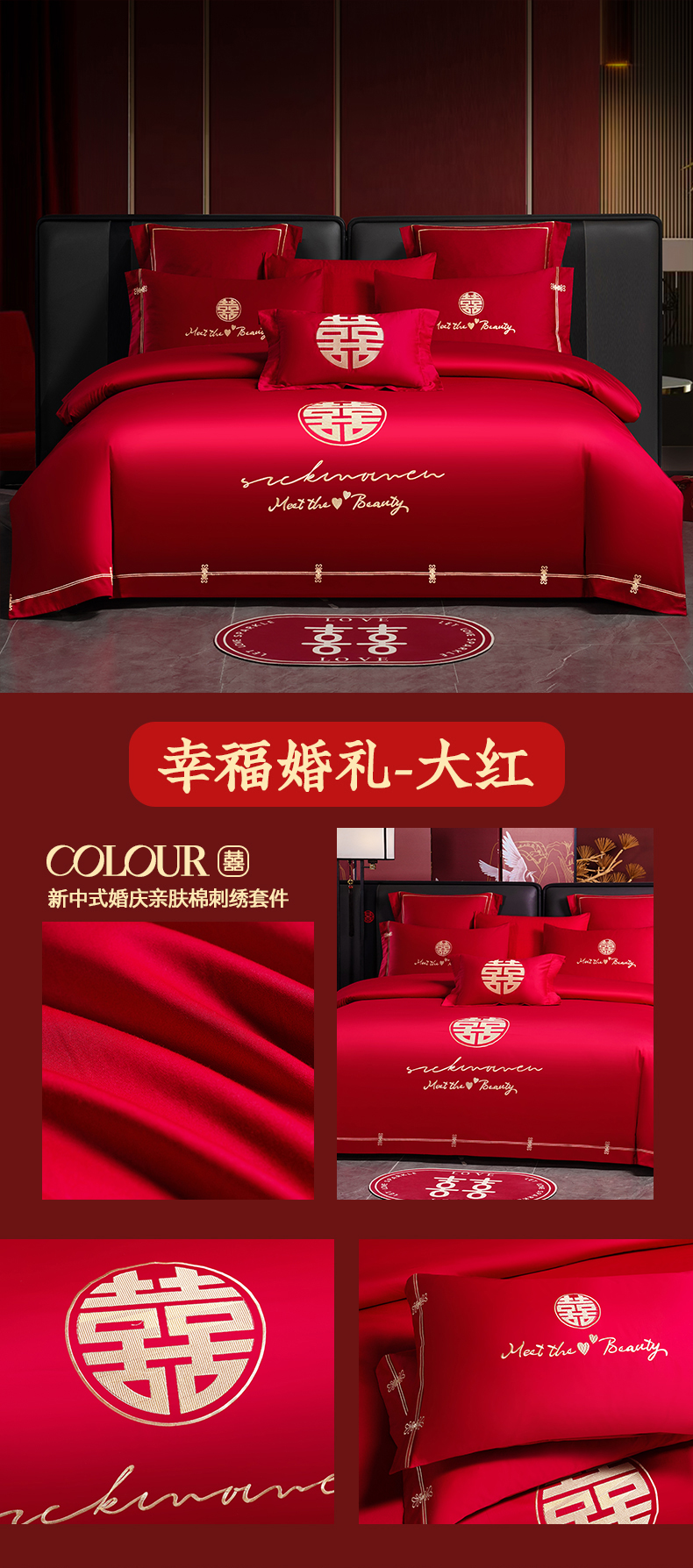 当前位置: 91家纺网 > 商品网购 > 床品套件 > 四件套 > 婚庆四件套 > 置顶家纺 2025新款新中式棚拍亲肤棉婚庆大红刺绣系列四件套 喜礼-大红