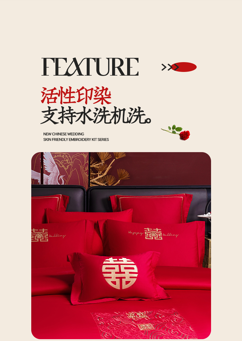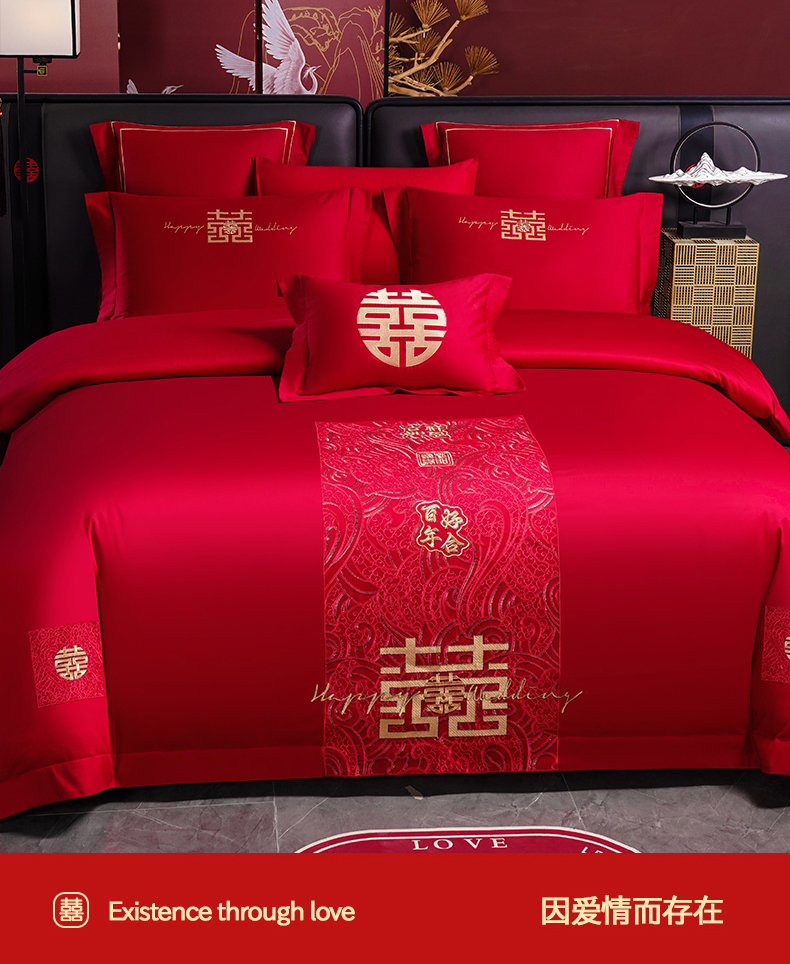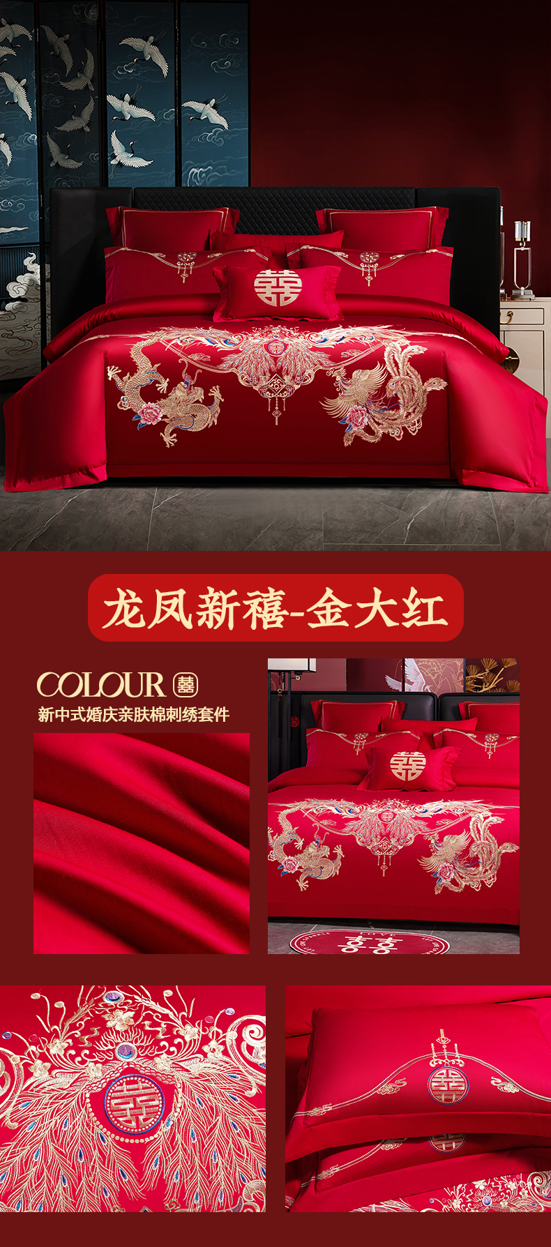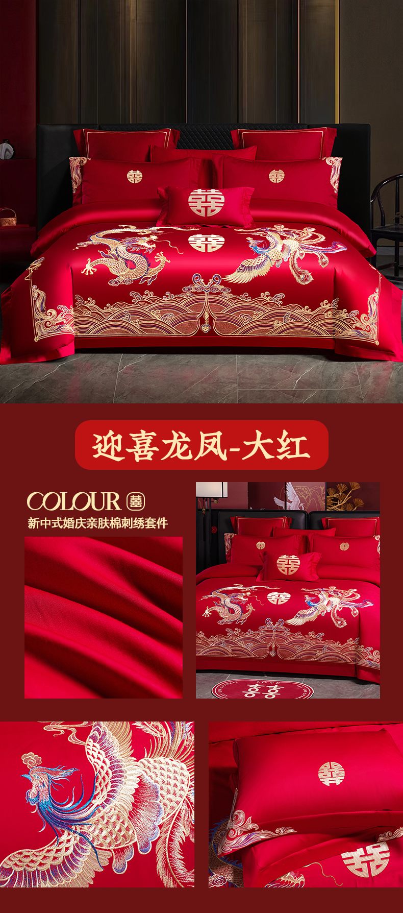 当前位置: 91家纺网 > 商品网购 > 床品套件 > 四件套 > 婚庆四件套 > 置顶家纺 2025新款新中式棚拍亲肤棉婚庆大红刺绣系列四件套 喜礼-大红
