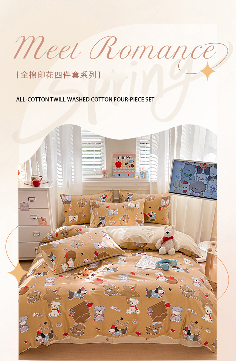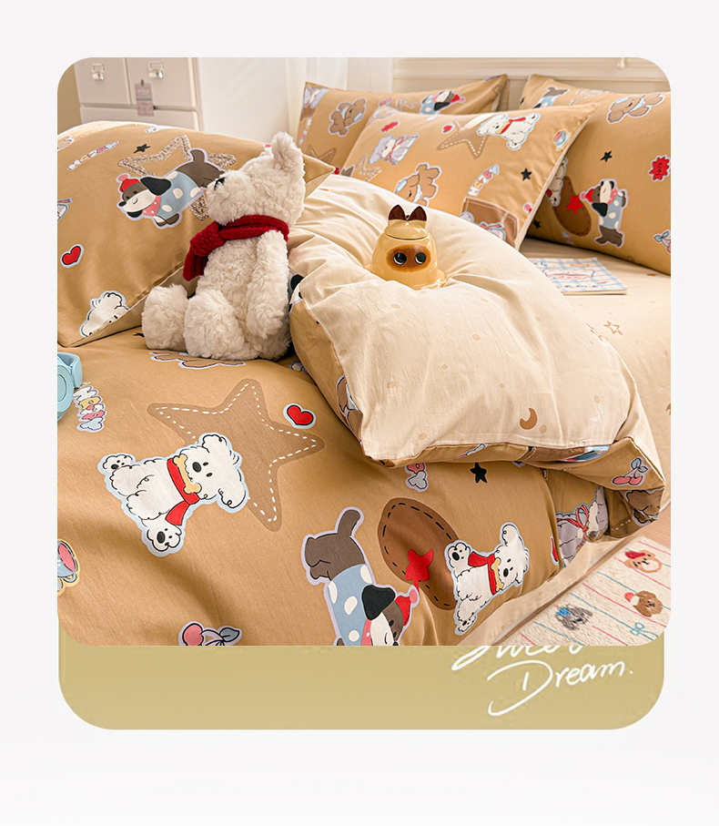 当前位置: 91家纺网 > 商品网购 > 床品套件 > 四件套 > 全棉普通四件套 > 曼之夏 2025新款全棉纯棉印花四件套 冬日可可狗